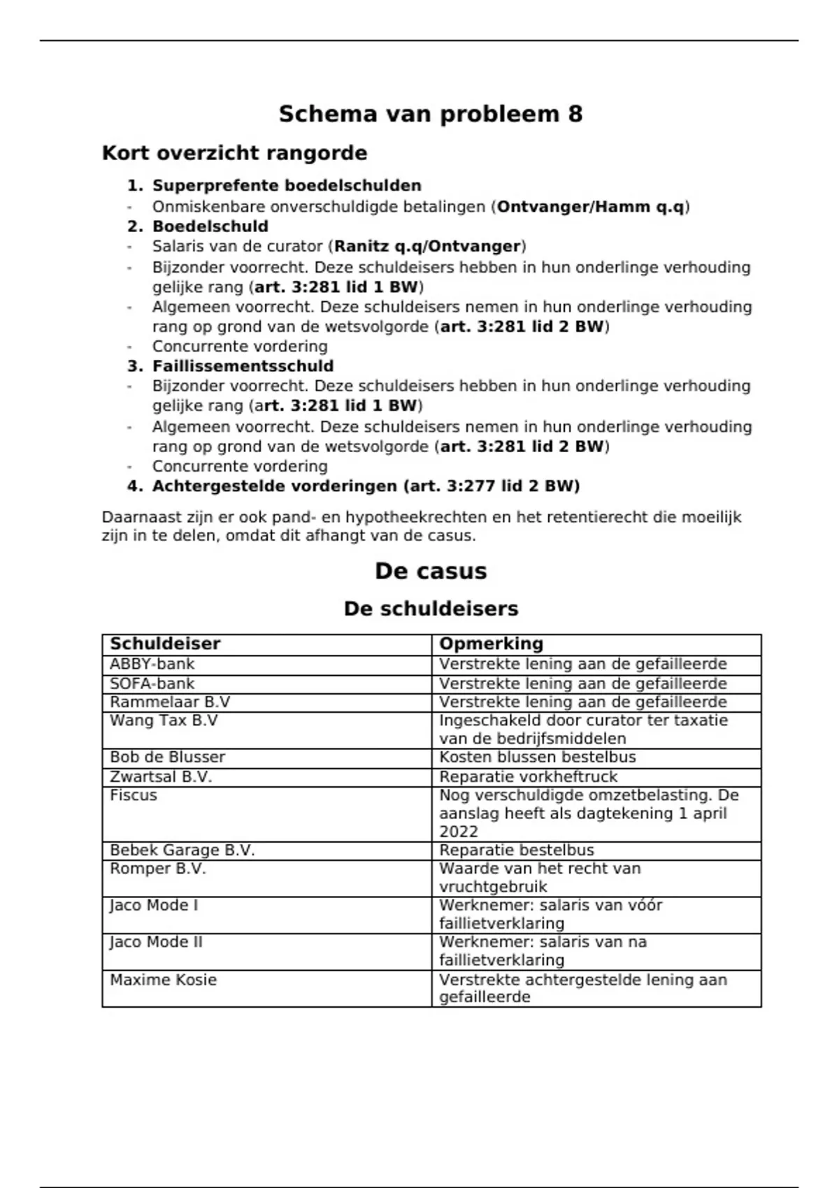 Schema waarin er overzichtelijk wordt ingegaan op de casus en er een rangorde wordt gemaakt.