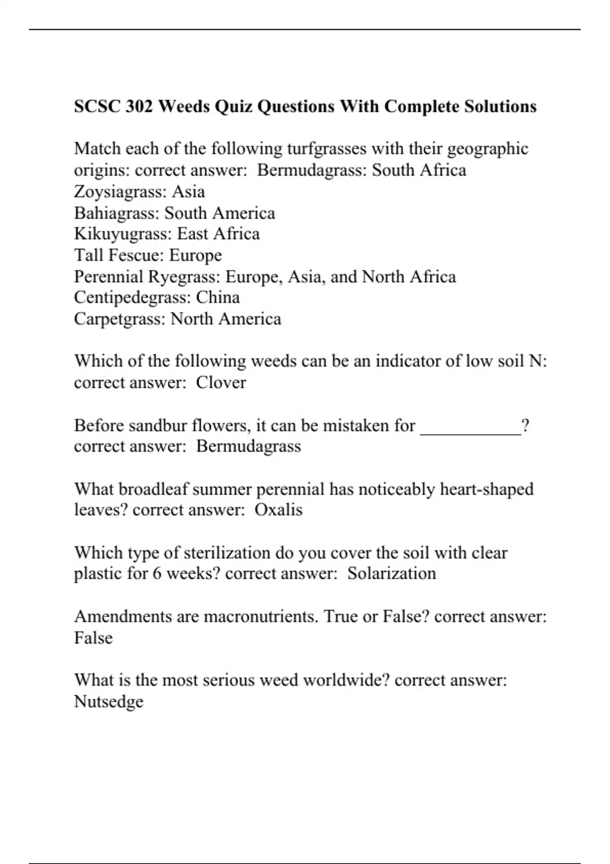 SCSC 302 Weeds Quiz Questions With Complete Solutions