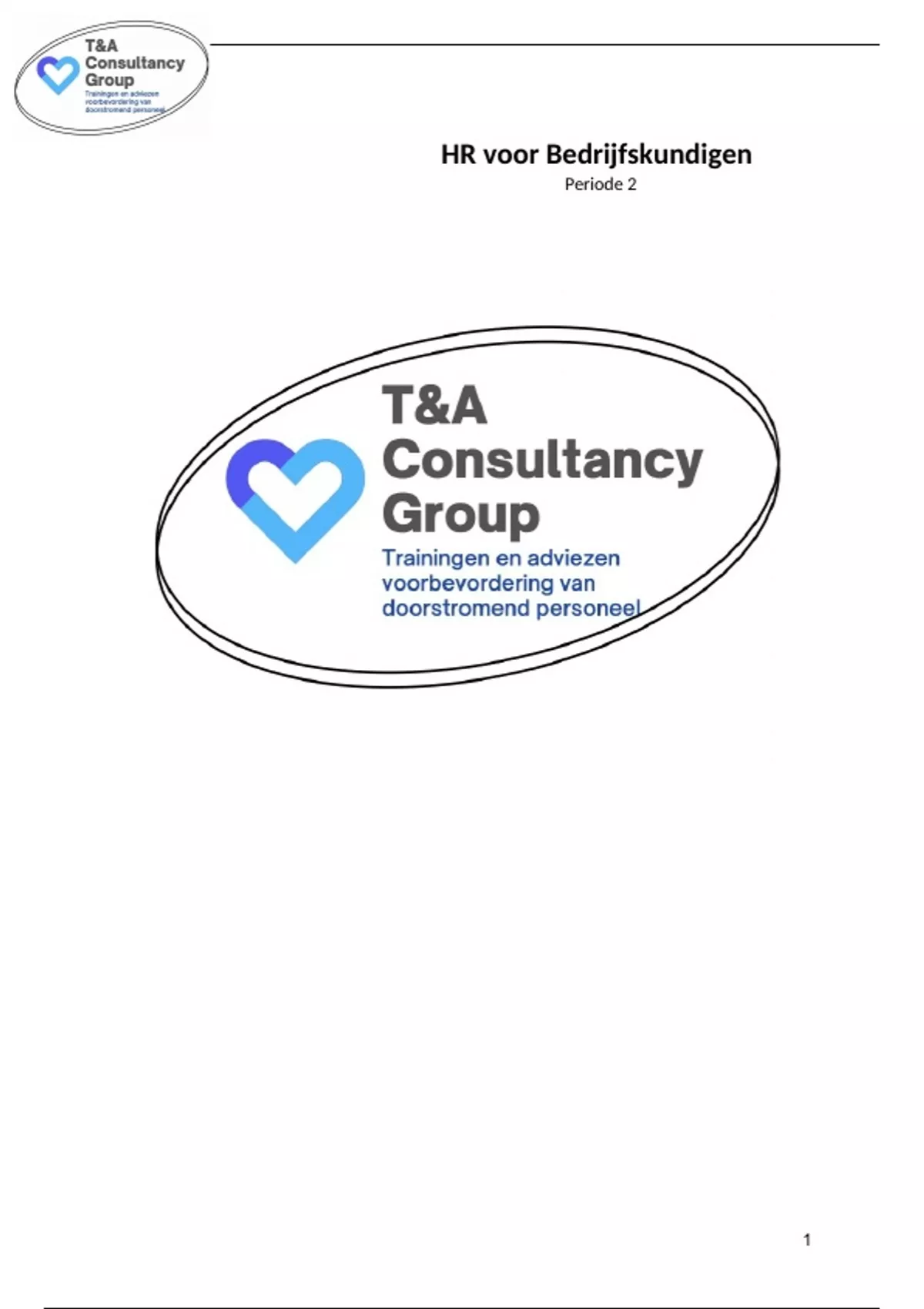 De naam van de organisatie is T&A Consultancy Group. T&A staat voor Training & Advice, de