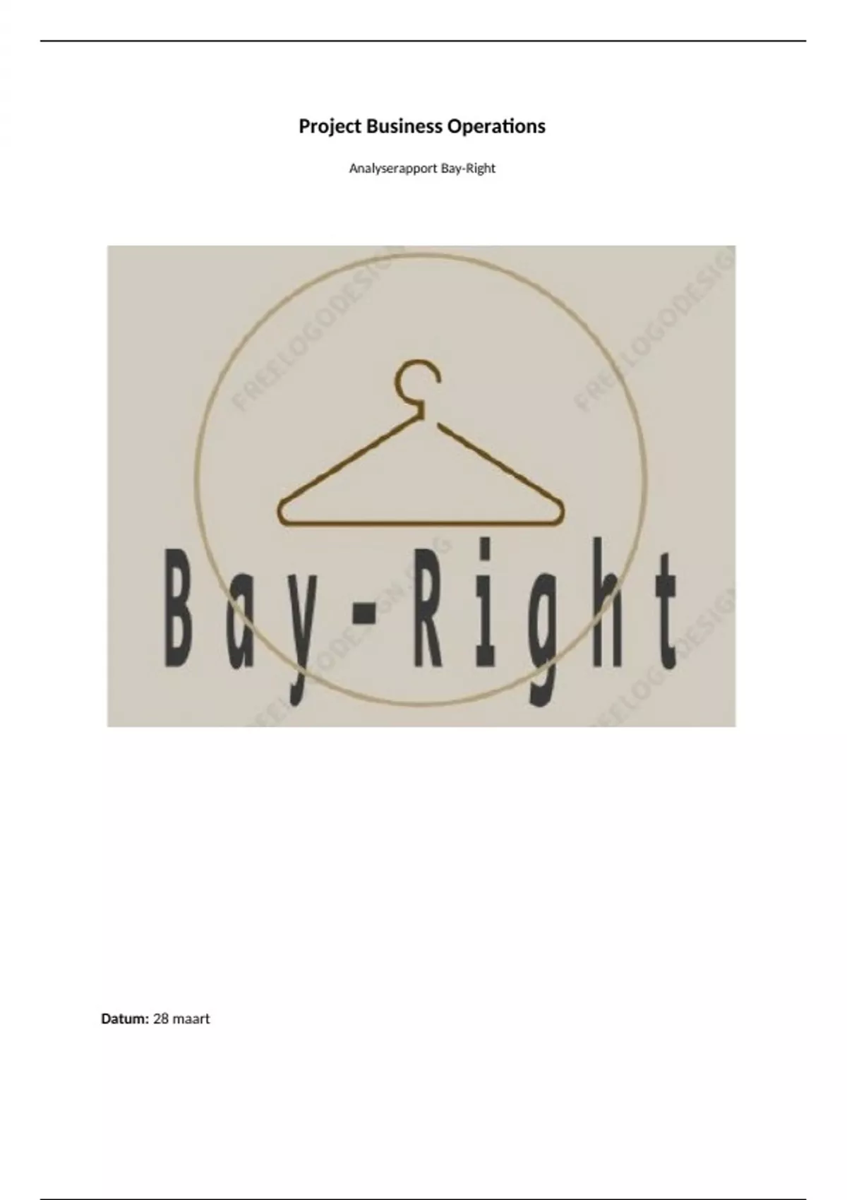 Voor u ligt ons analyserapport over Bay-Right. Het rapport is geschreven in het kader van het vak