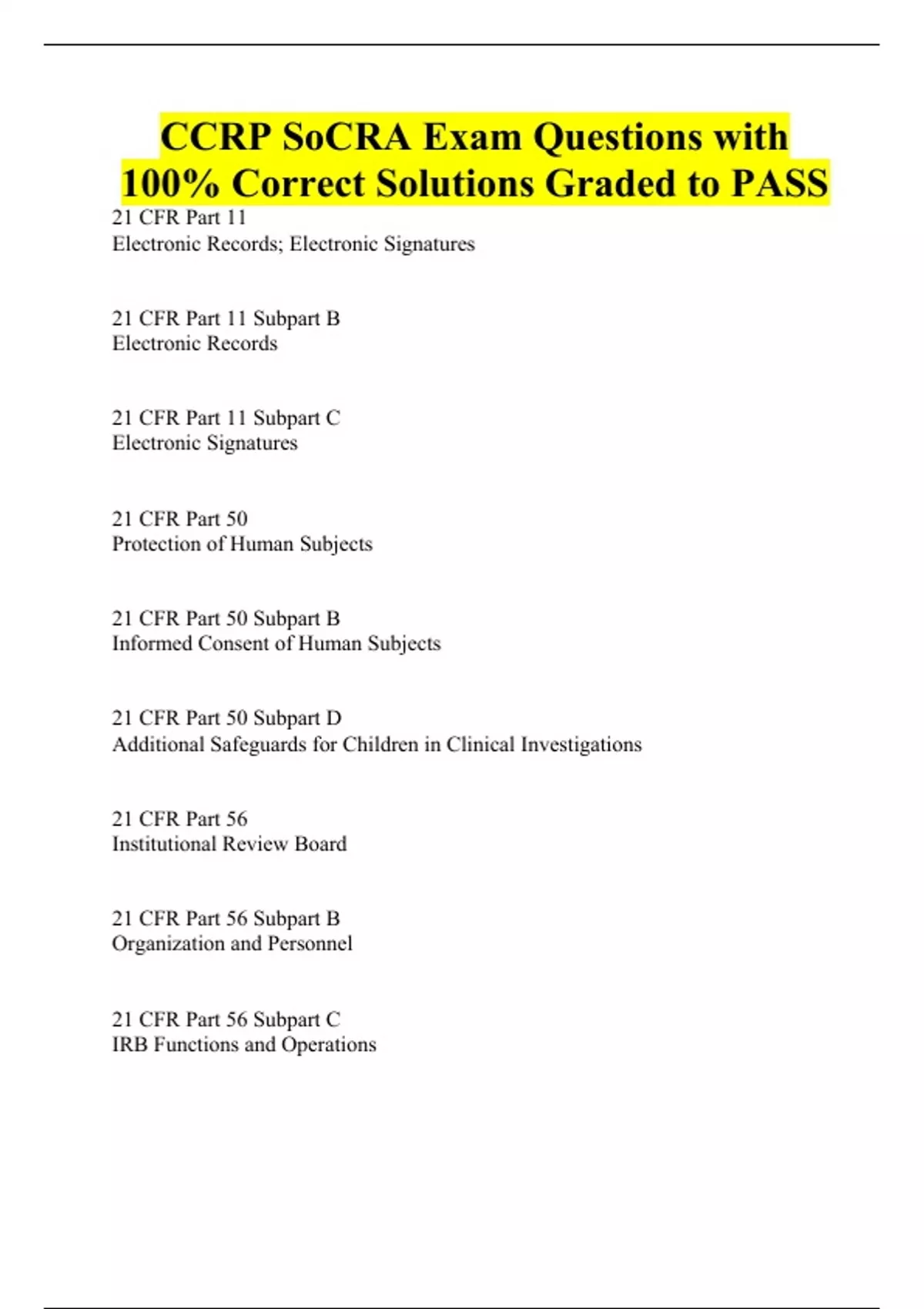 CCRP SoCRA Exam Questions with 100% Correct Solutions Graded to PASS