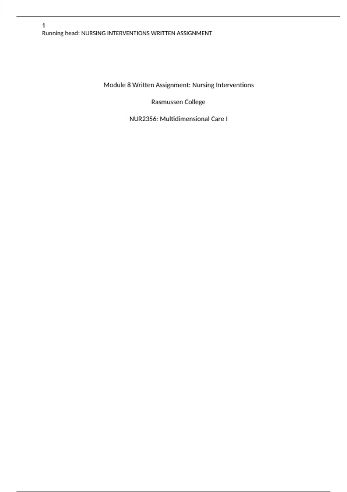 Module 8 Written Assignment: Nursing Interventions Rasmussen College NUR2356: Multidimensional Care