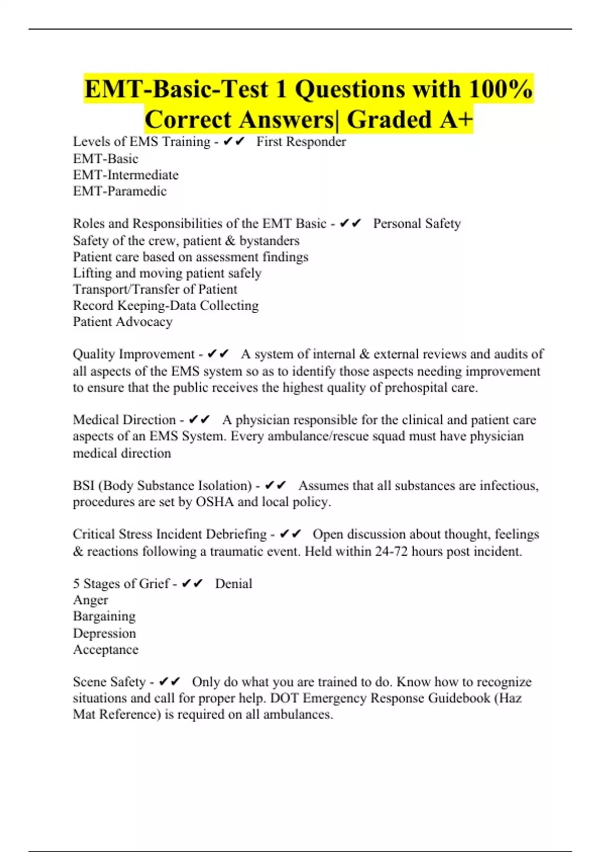 EMT-Basic-Test 1 Questions with 100% Correct Answers| Graded A+