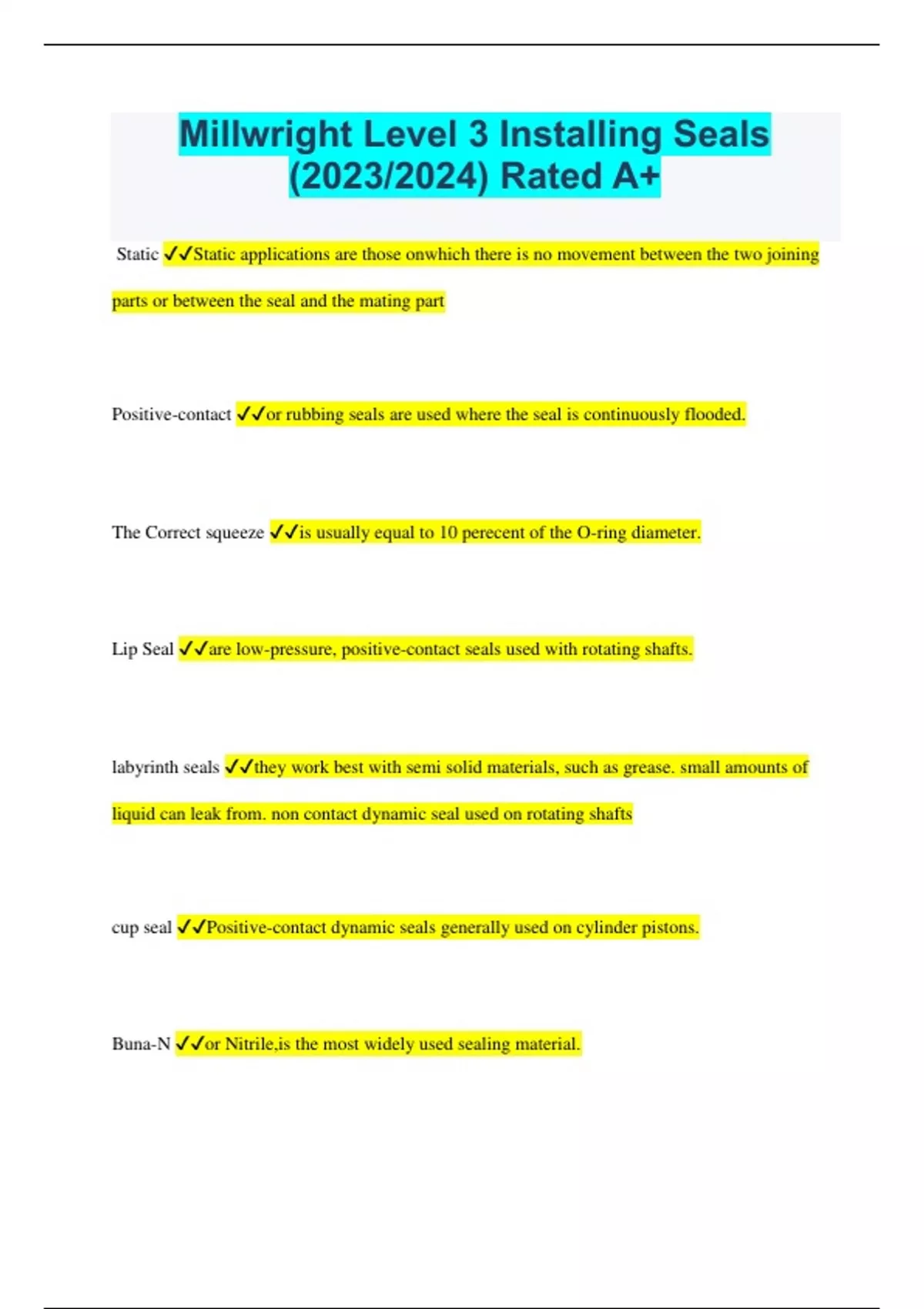 Millwright Level 3 Installing Seals (2023/2024) Rated A+