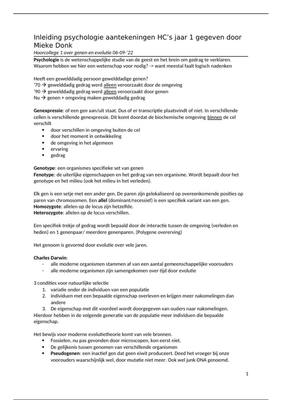 Hoorcollege 1 over genen en evolutie 06-09-‘22