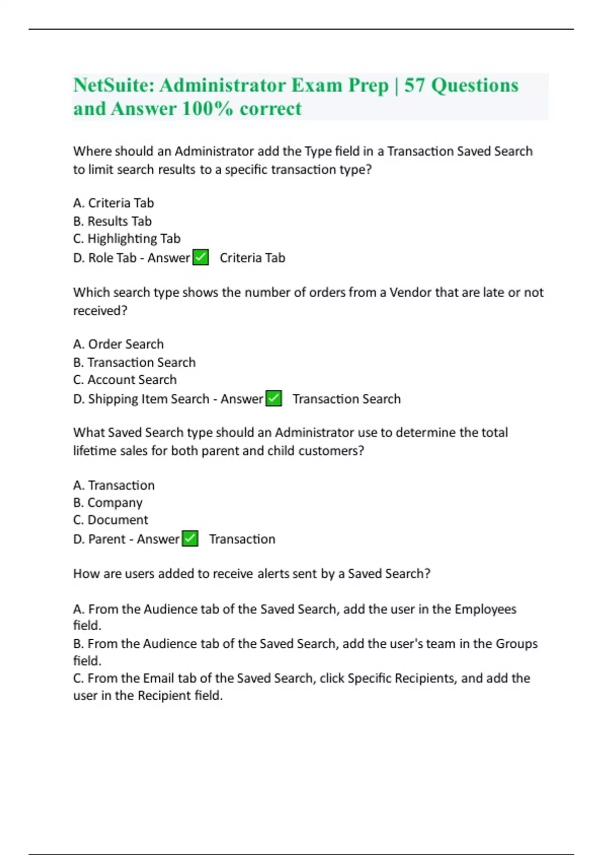 NetSuite: Administrator Exam Prep | 57 Questions and Answer 100% correct
