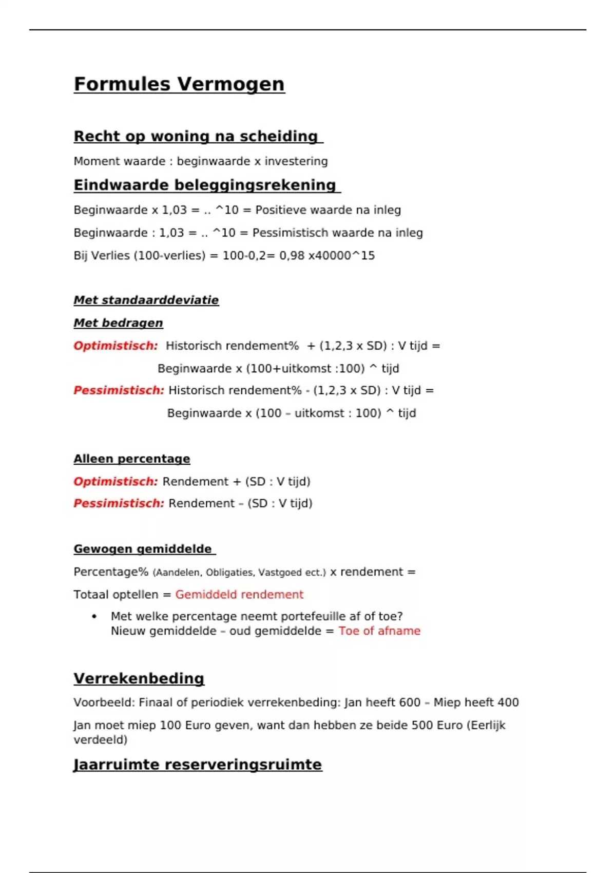 Dit document bevat alle belangrijke formules die je moet