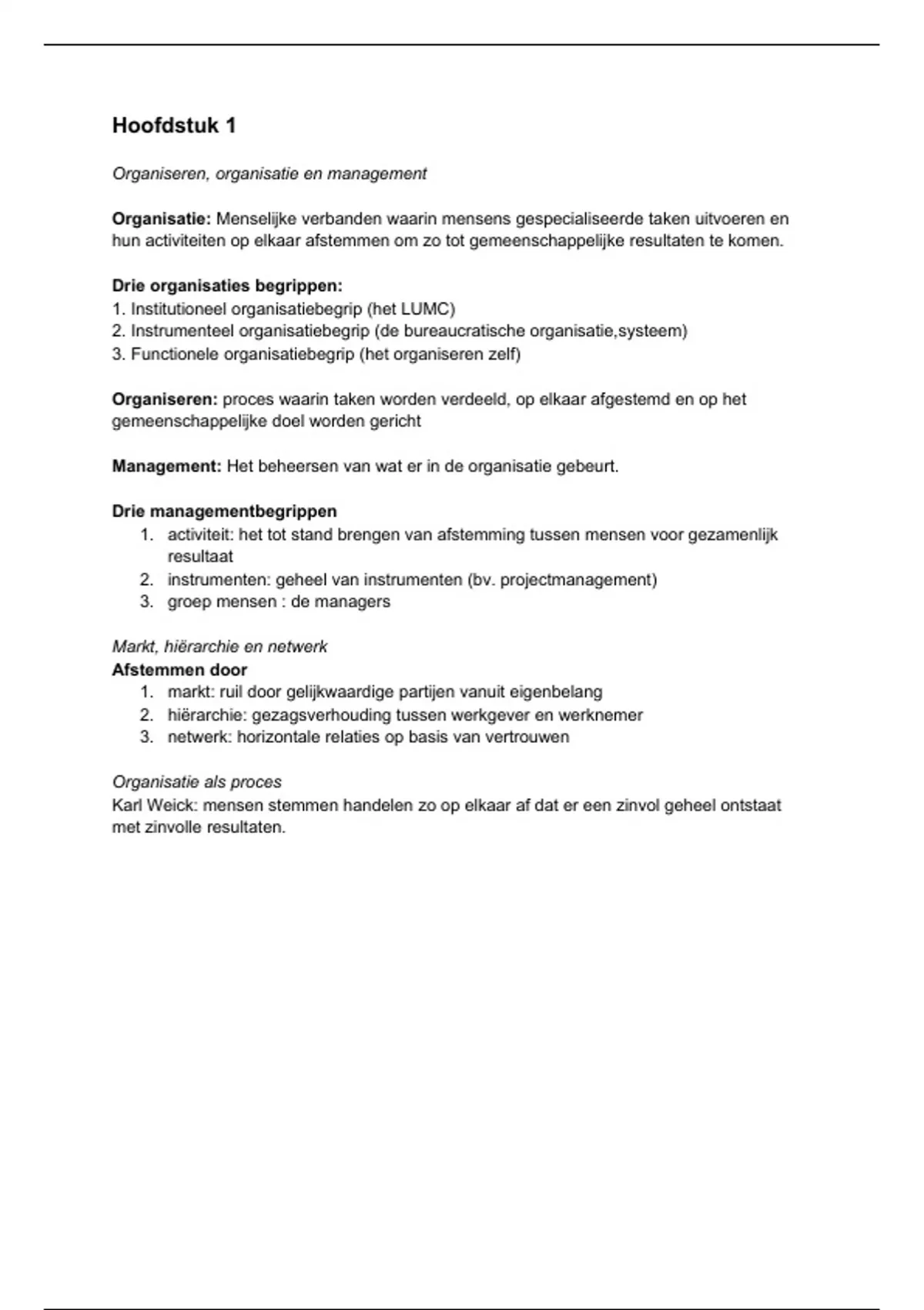 Management: Het beheersen van wat er in de organisatie gebeurt.