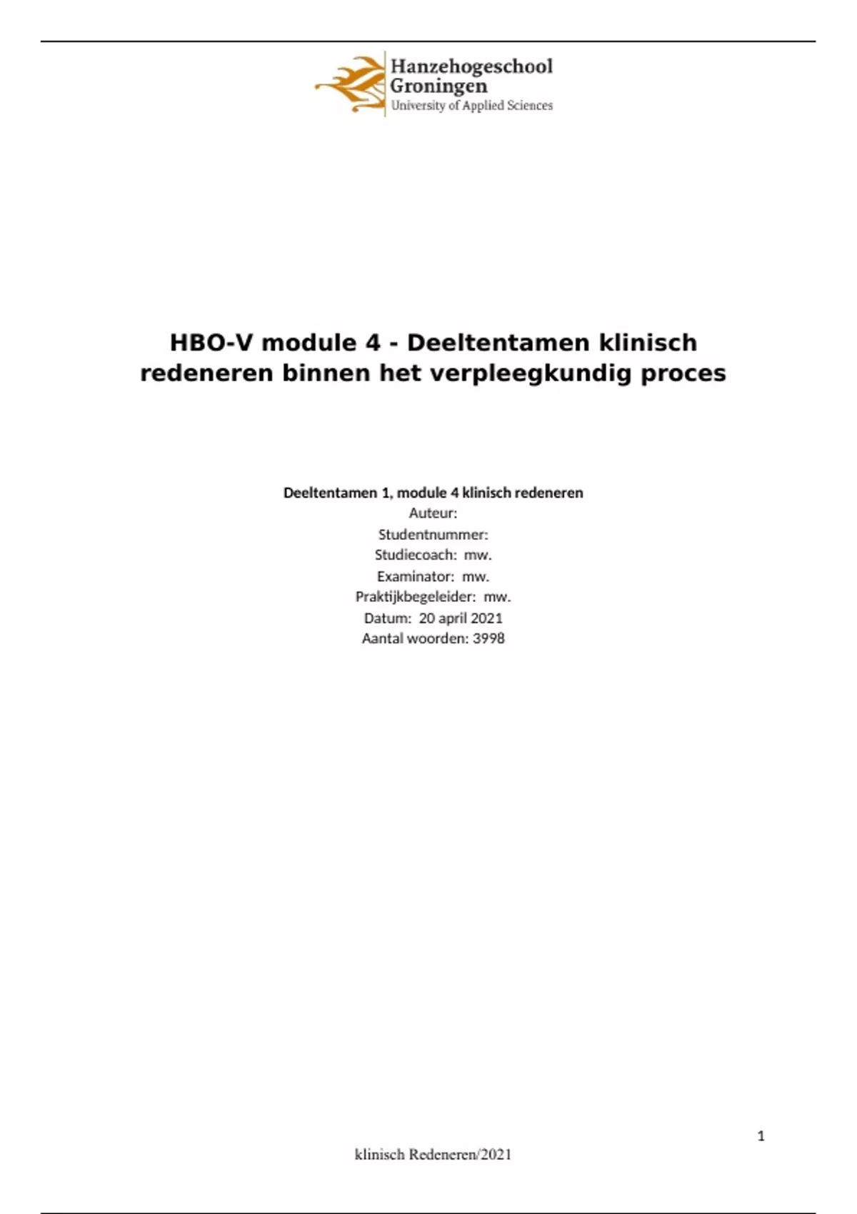Voor u ligt het verslag klinisch redeneren binnen het verpleegkundig proces welke in opdracht
