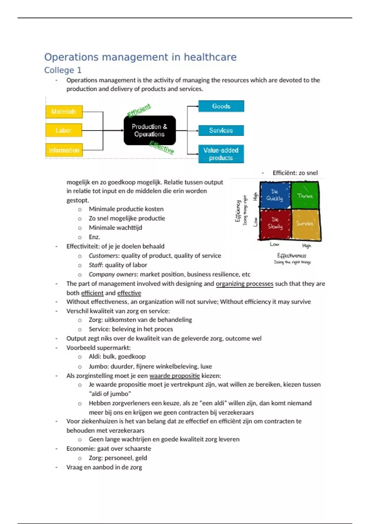 Collegeslides en aantekeningen van colleges bij het vak Operations Management in healthcare. Overzichtelijk. Zowel Nederlandse als Engelse termen.