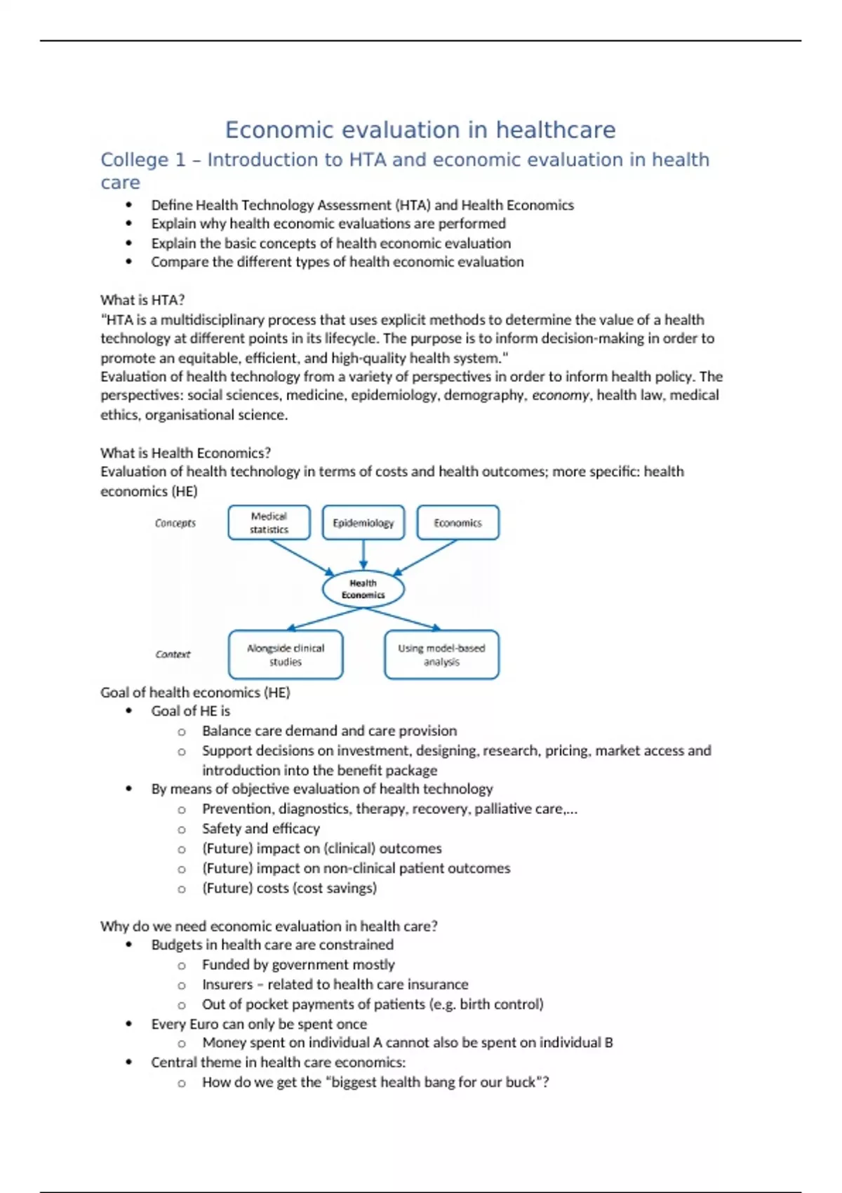 College 1 – Introduction to HTA and economic evaluation in health