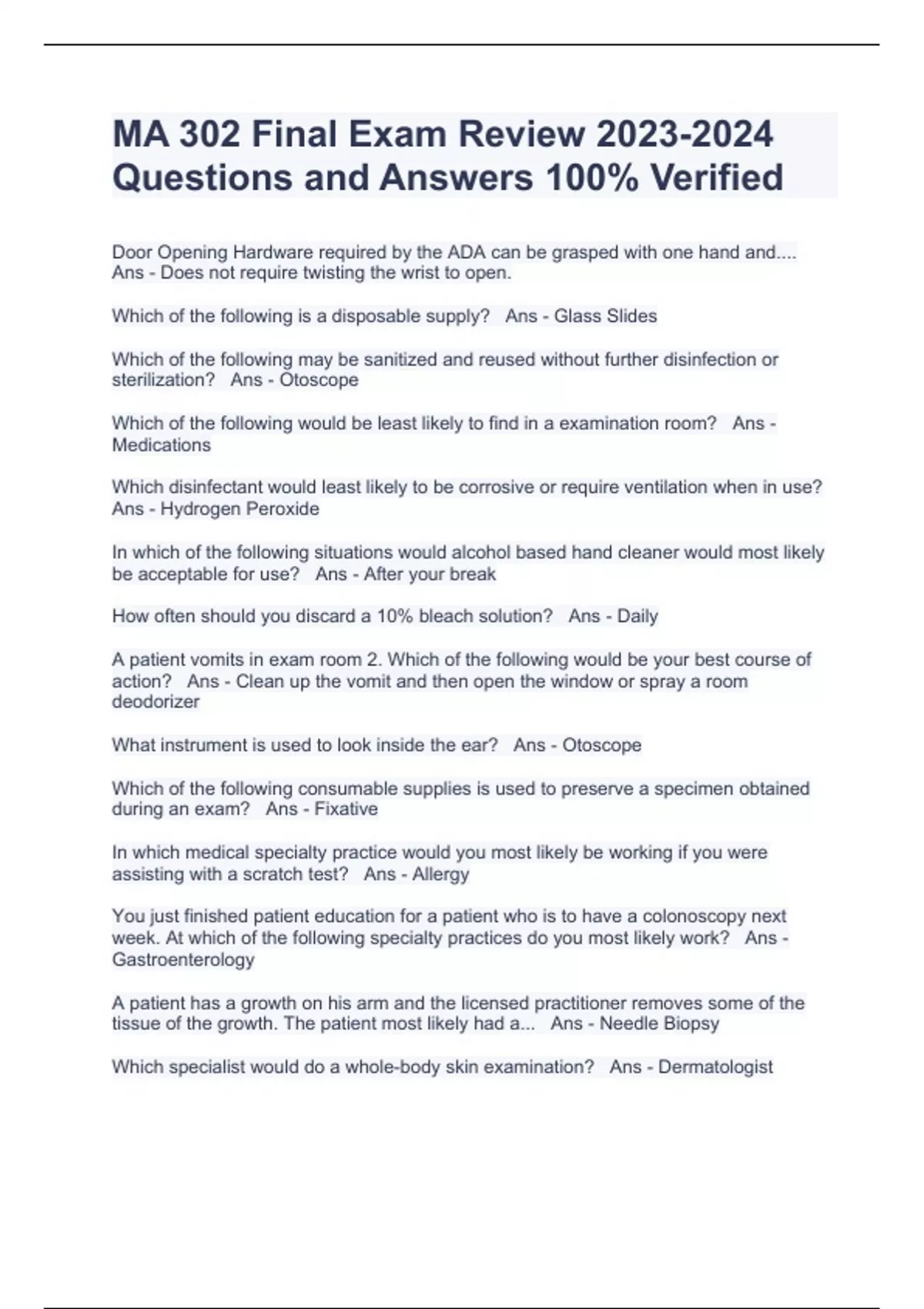 MA 302 Final Exam Review Questions and Answers 100% Verified