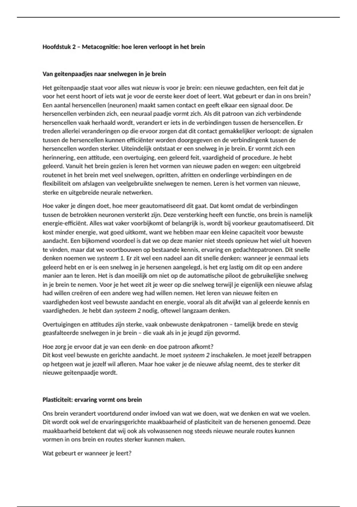 tussen de betrokken neuronen versterkt zijn. Deze versterking heeft een functie, ons brein is namelijk