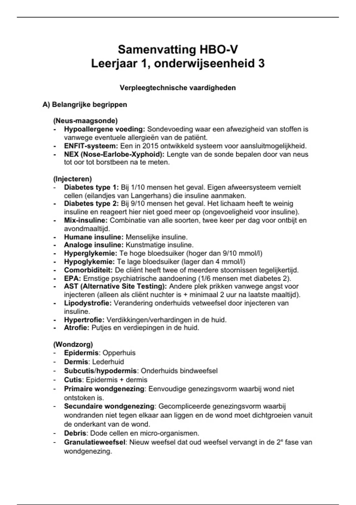 In het document vind je een samenvatting van OWE 3 Gezond Leven. Hierin staat: - Neusmaagsonde, Injecteren, wondzorg, act-zwachtelen, verplaatsen binnen grenzen van het bed. - Model van Lalonde, CVO-cyclus, MBG-methode, stages of change model.