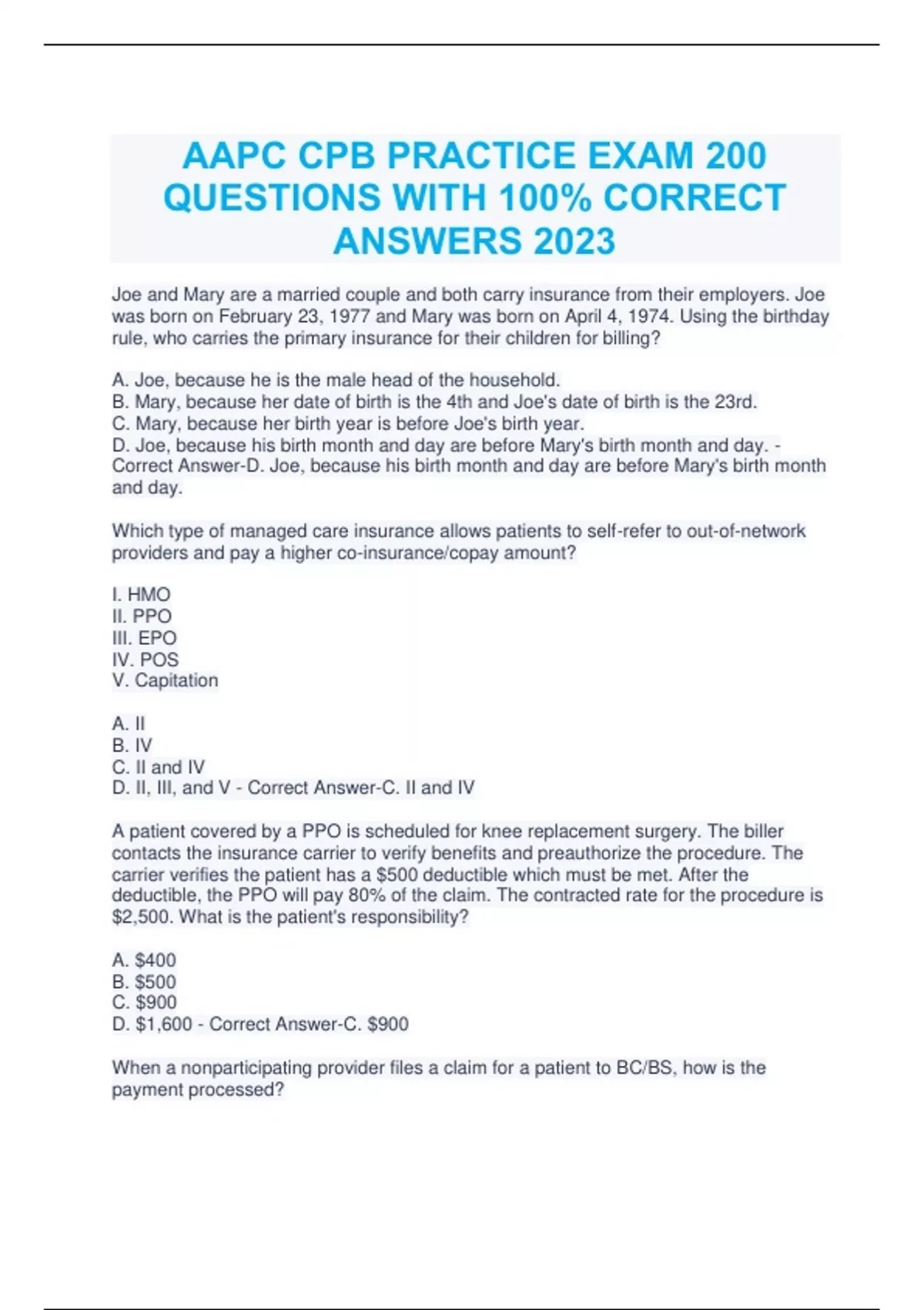 AAPC CPB PRACTICE EXAM 200 QUESTIONS WITH 100% CORRECT ANSWERS 2023.