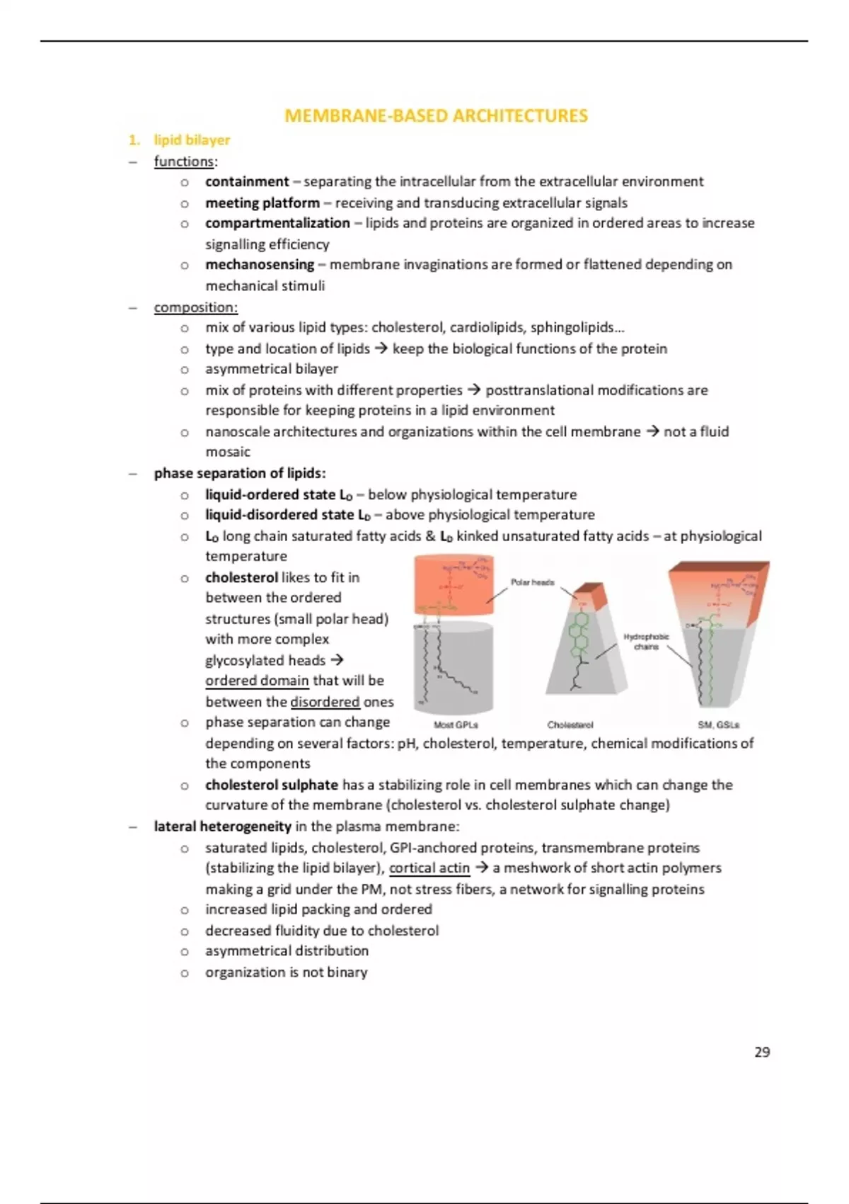 o compartmentalization – lipids and proteins are organized in ordered areas to increase