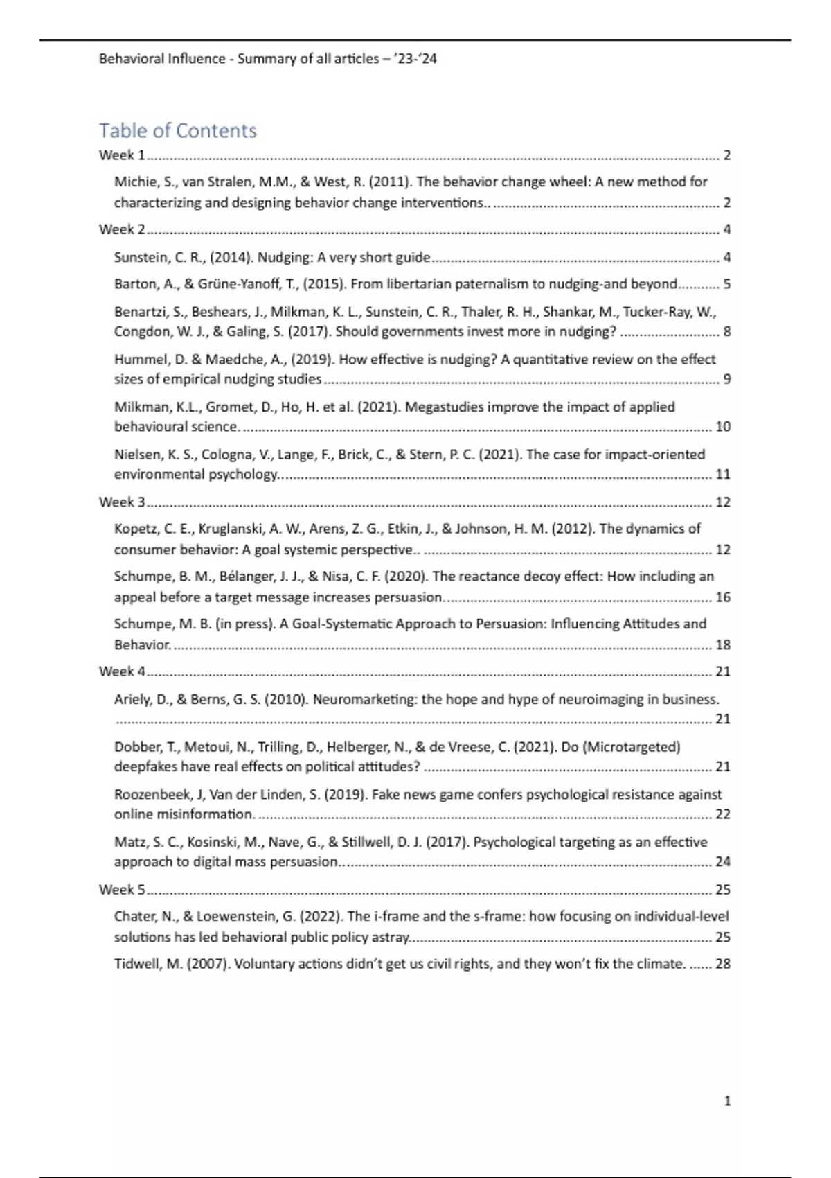 Psychology Master: Social Influence - Summary of the articles for Behavioral Influence, Emotional Influence & Applying Research Methods