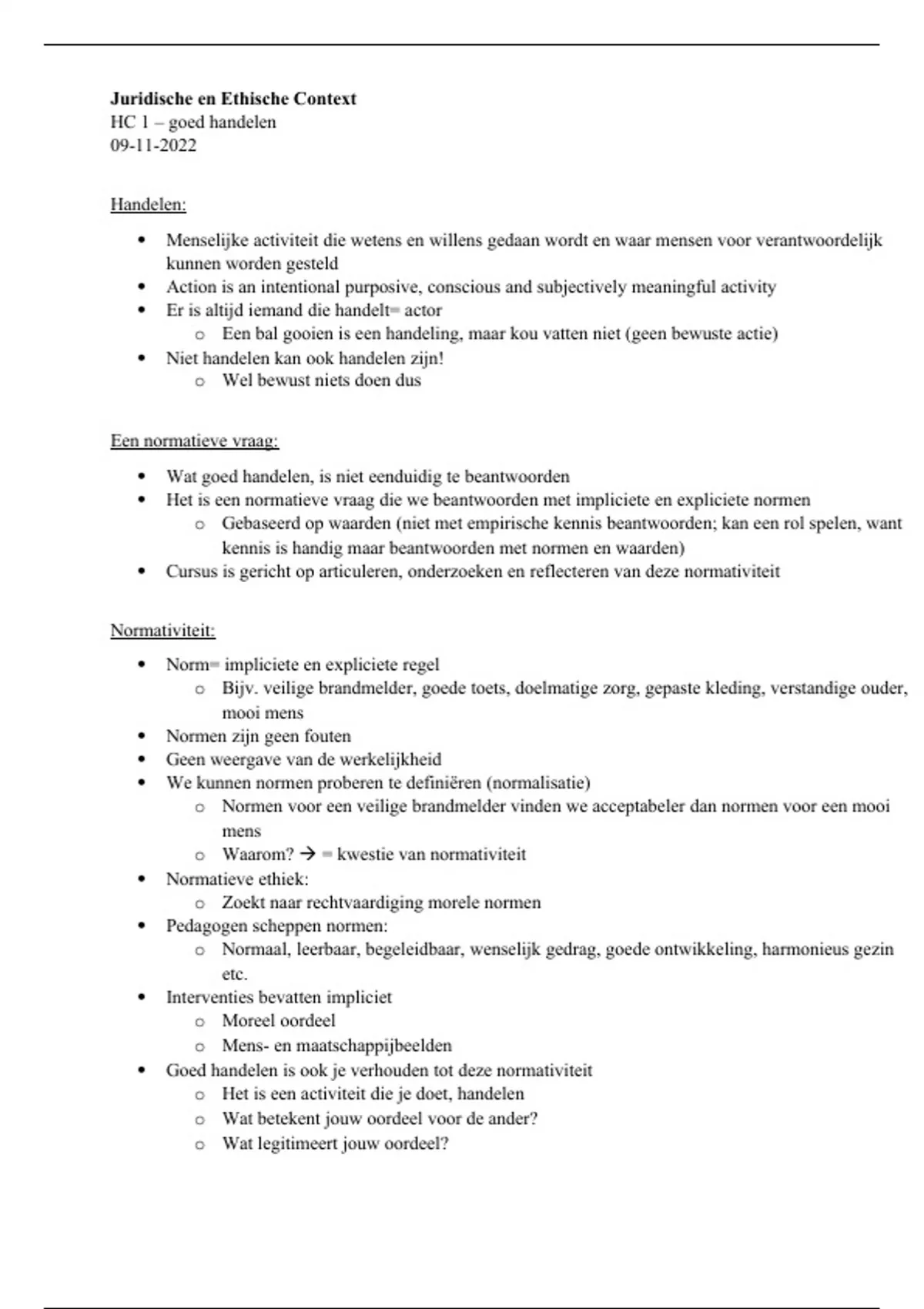 o In vastgelegd wat goed handelen is