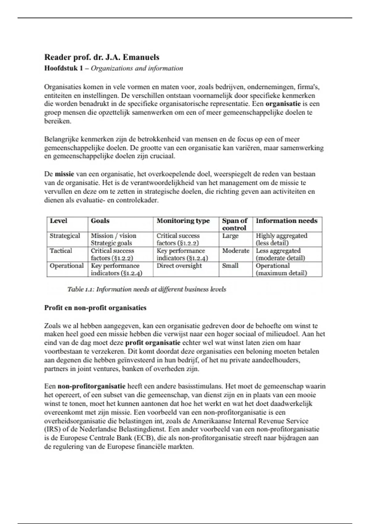 Hoofdstuk 1 – Organizations and information