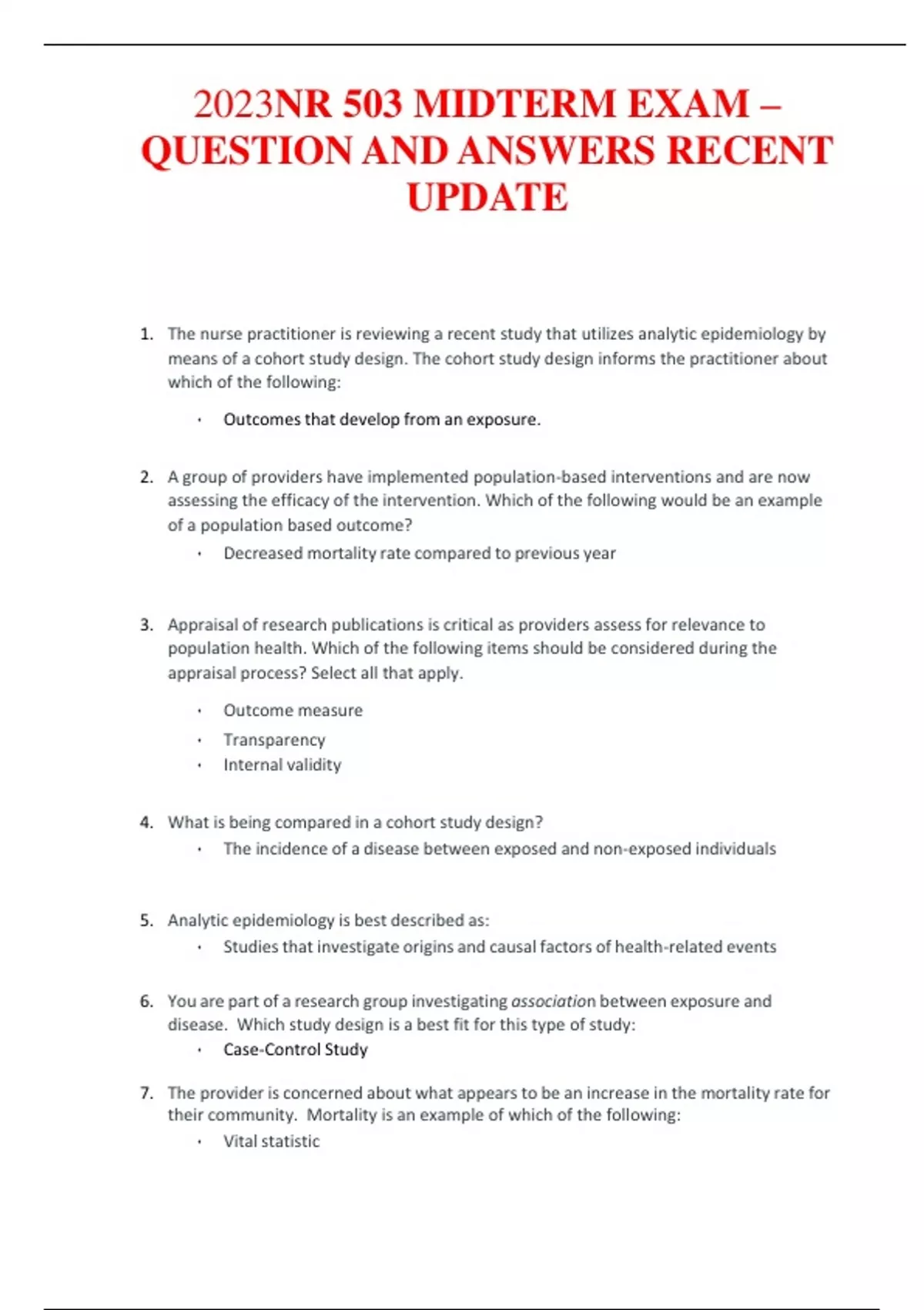 2023NR 503 MIDTERM EXAM – QUESTION AND ANSWERS RECENT UPDATE