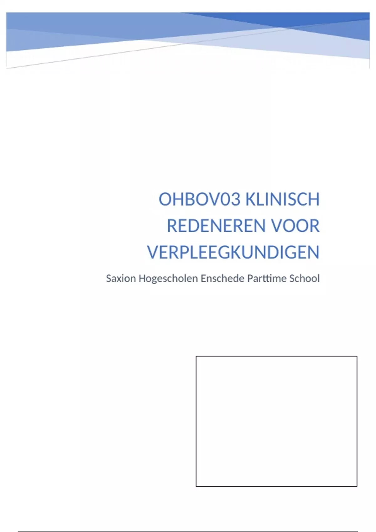 Voor de module Klinisch Redeneren voor verpleegkundigen heb ik onderstaand verslag geschreven.