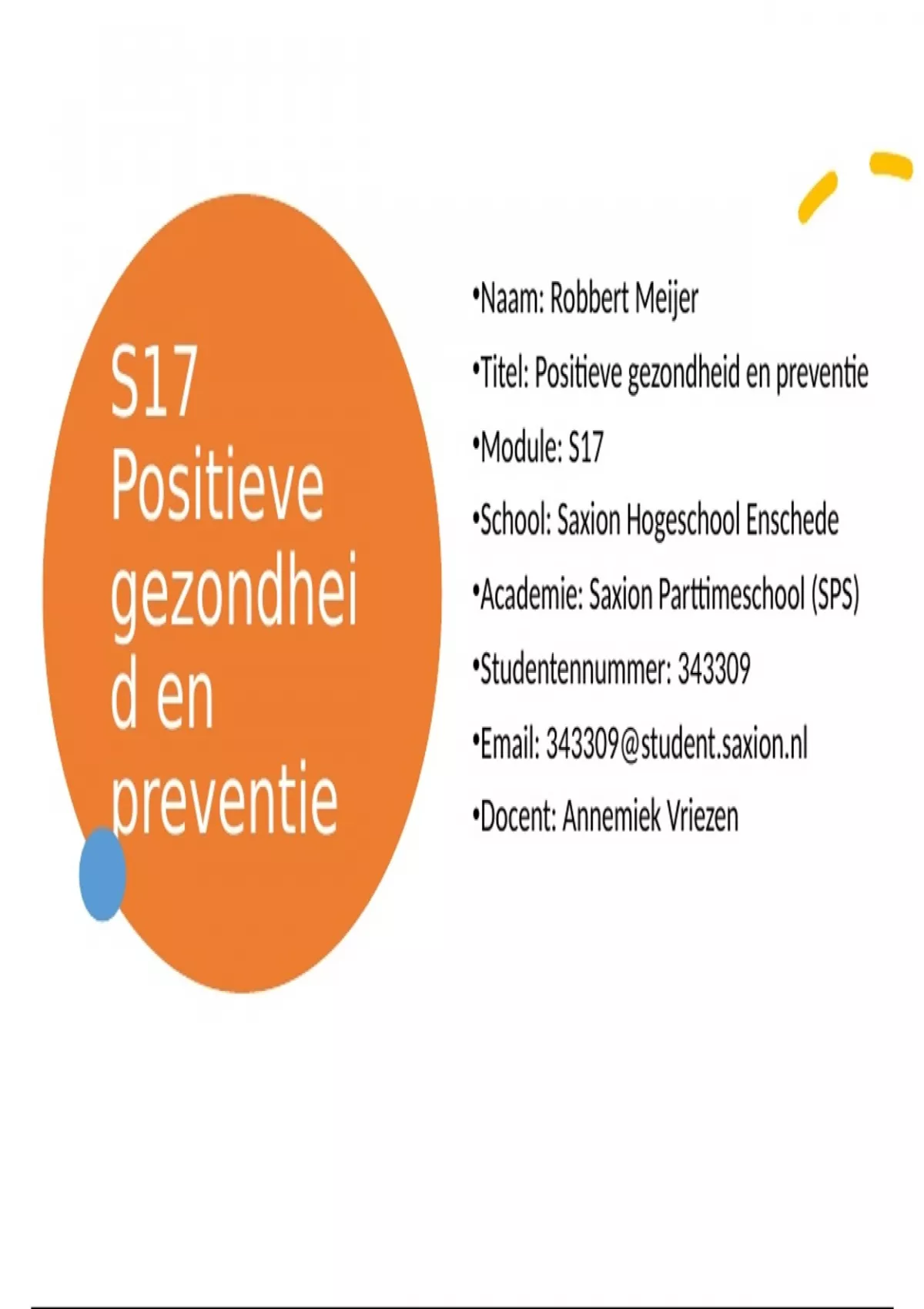 S17 •Titel: Positieve gezondheid en preventie