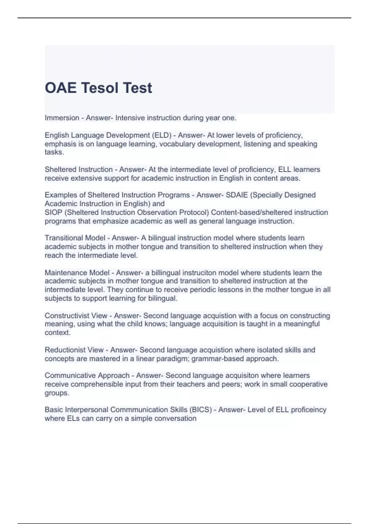 OAE Tesol Test 2023-Answered