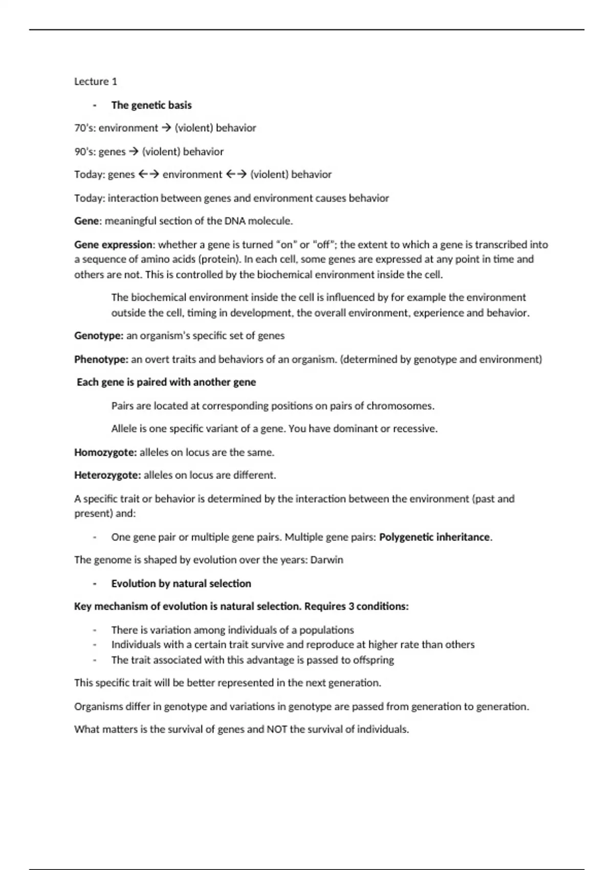 Today: genes  environment  (violent) behavior
