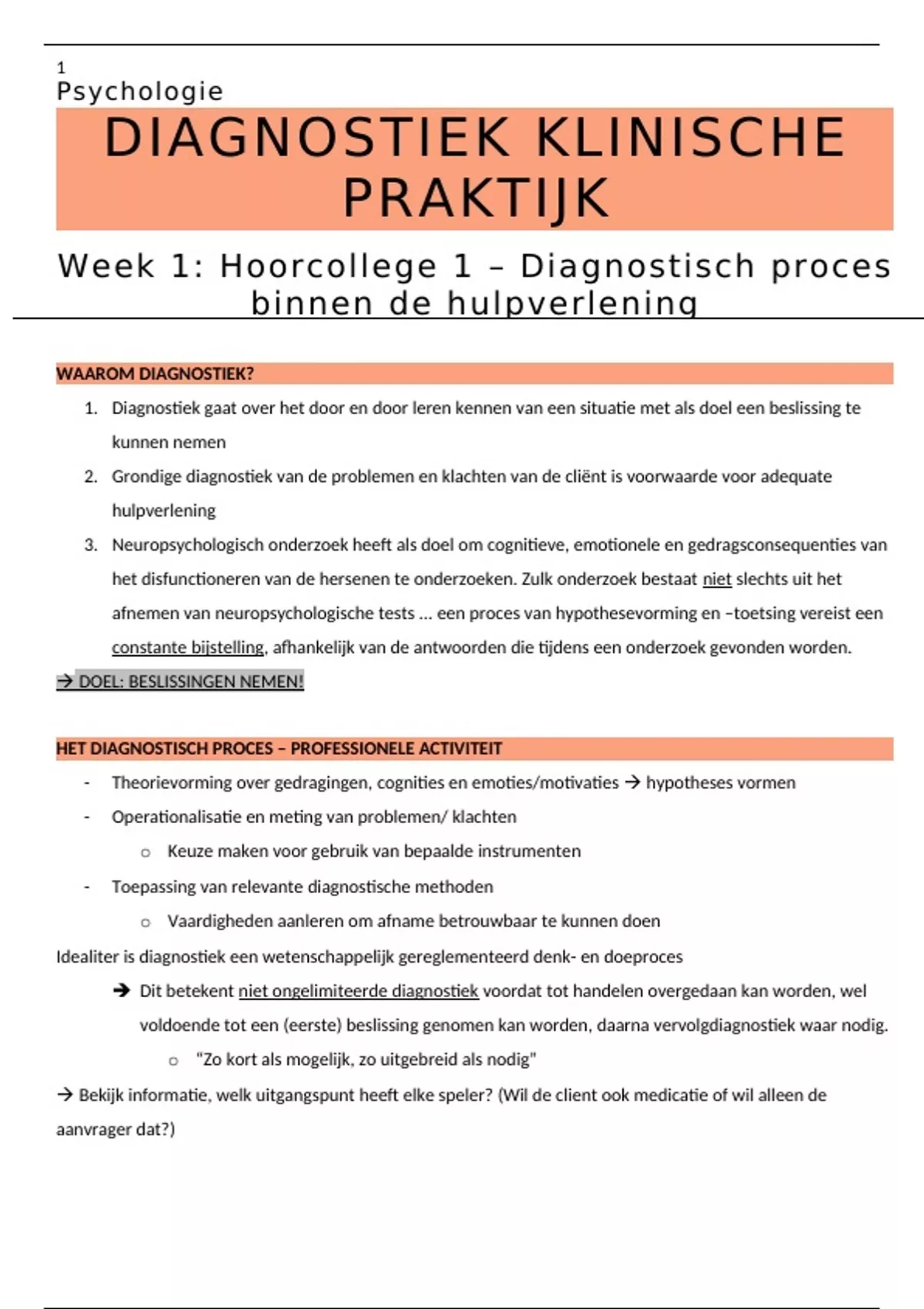 Week 1: Hoorcollege 1 – Diagnostisch proces