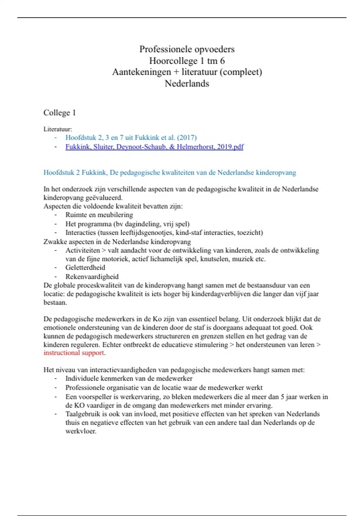 - Hoofdstuk 2, 3 en 7 uit Fukkink et al. (2017)