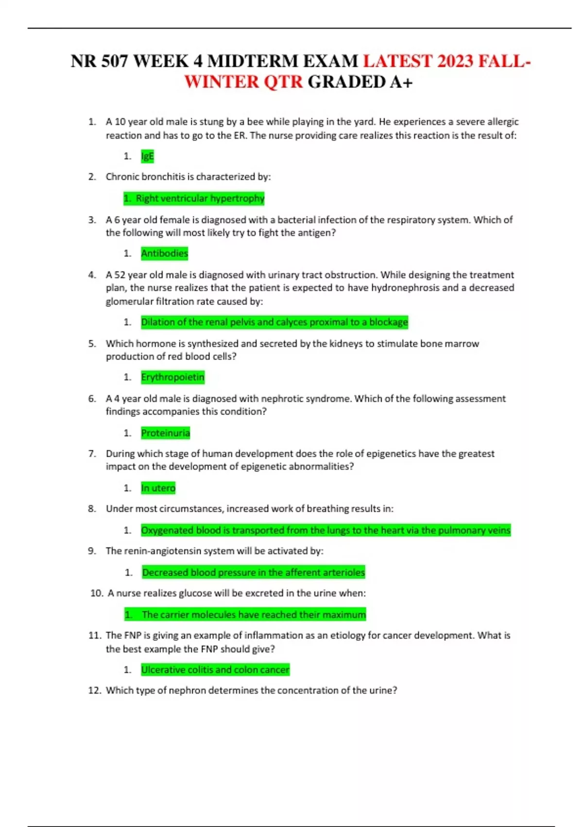 nr 507 week 4 midterm exam latest 2023 fallwinter