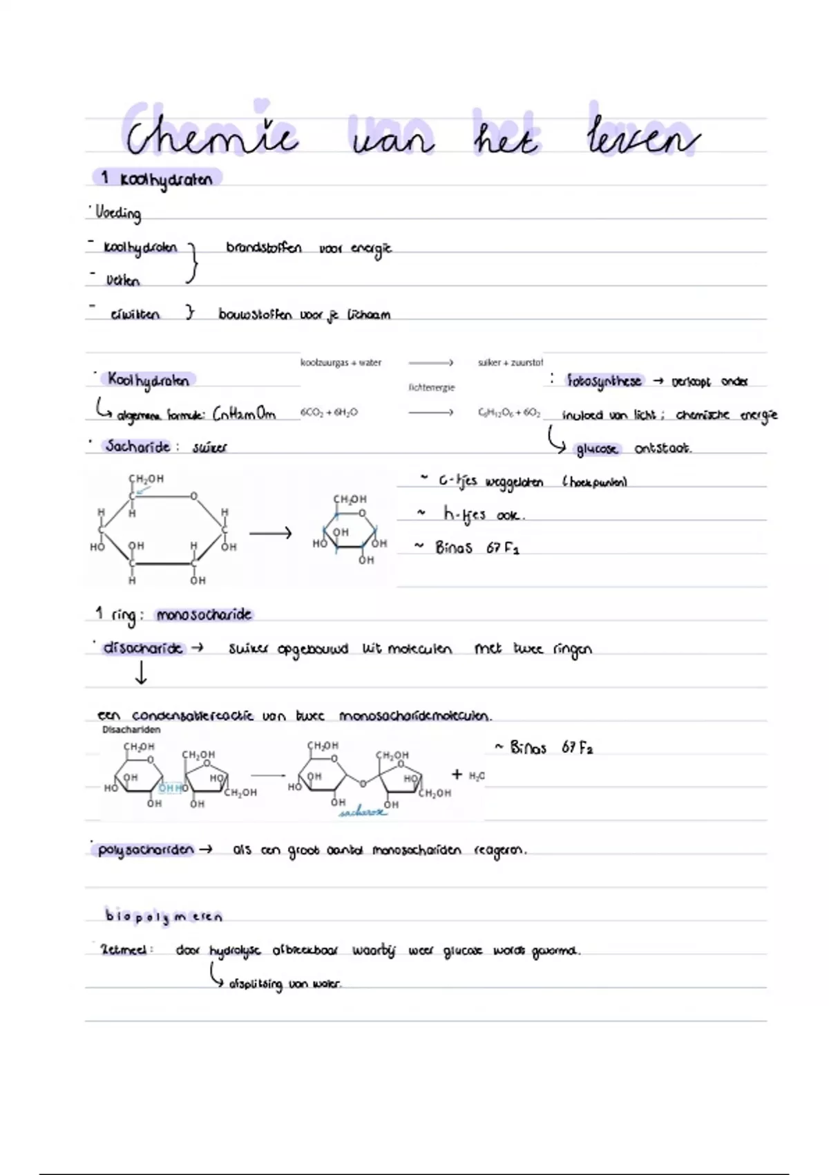 Samenvatting scheikunde hoofdstuk 12 chemie van het leven - havo 5