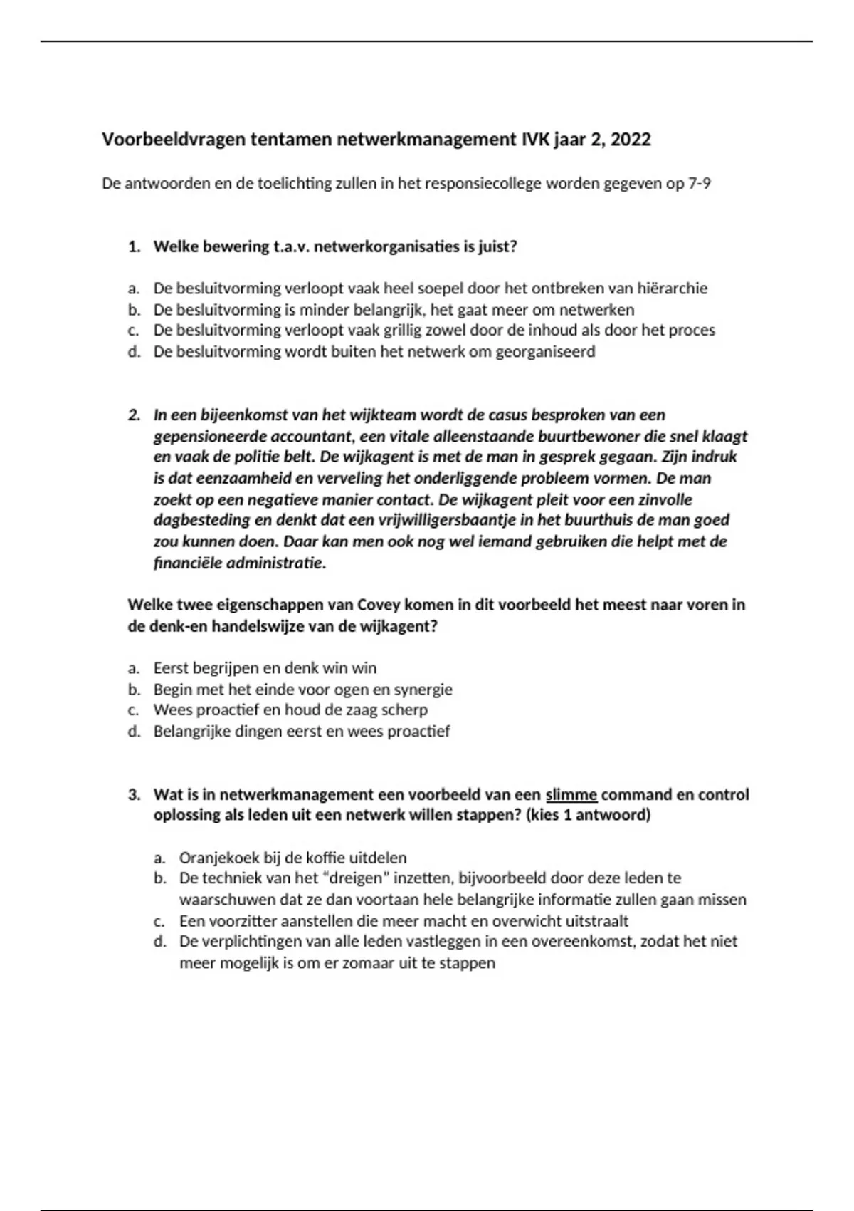 Voorbeeldvragen tentamen netwerkmanagement IVK jaar 2, 2022