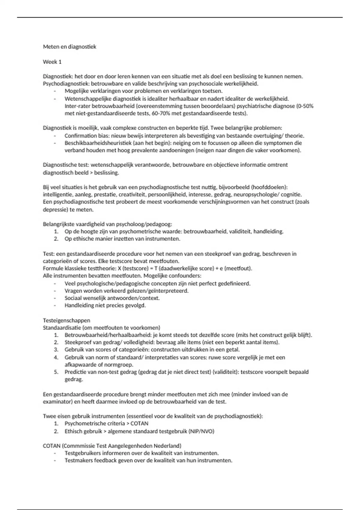 Samenvatting meten en diagnostiek (jaar 1) (universitaire pabo/ pedagogische wetenschappen)