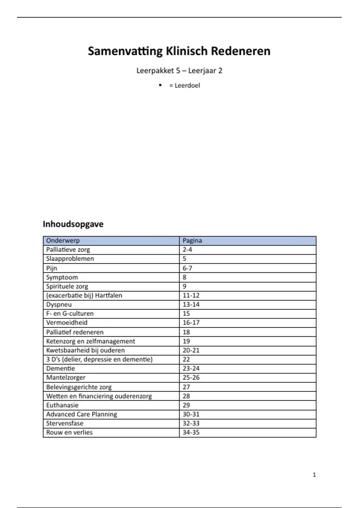 ,▪ De student kent de meest voorkomende symptomen bij cliënten in de palliatieve fase en