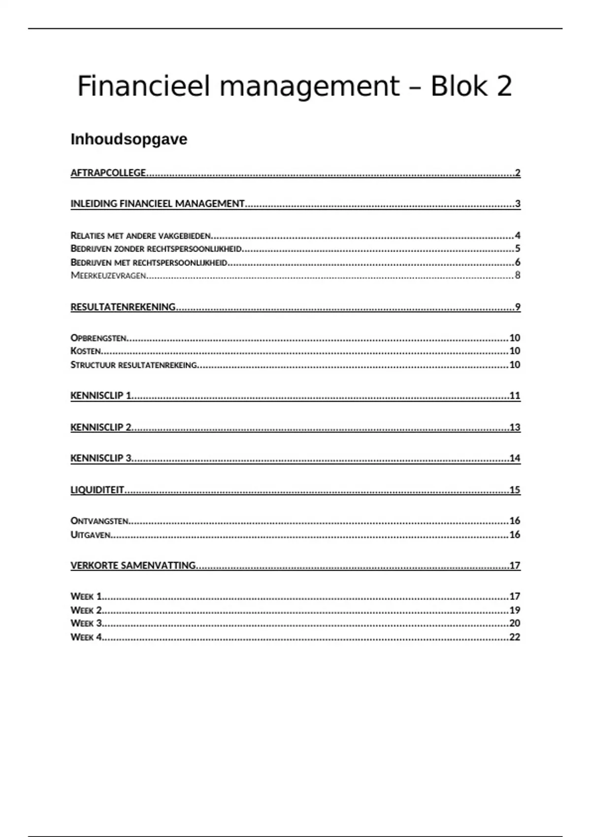 Hierin staat alles voor het vak FM Financial Management. Ik heb er een voldoende mee gehaald. Voor de opleiding op Breda University of applied sciences.