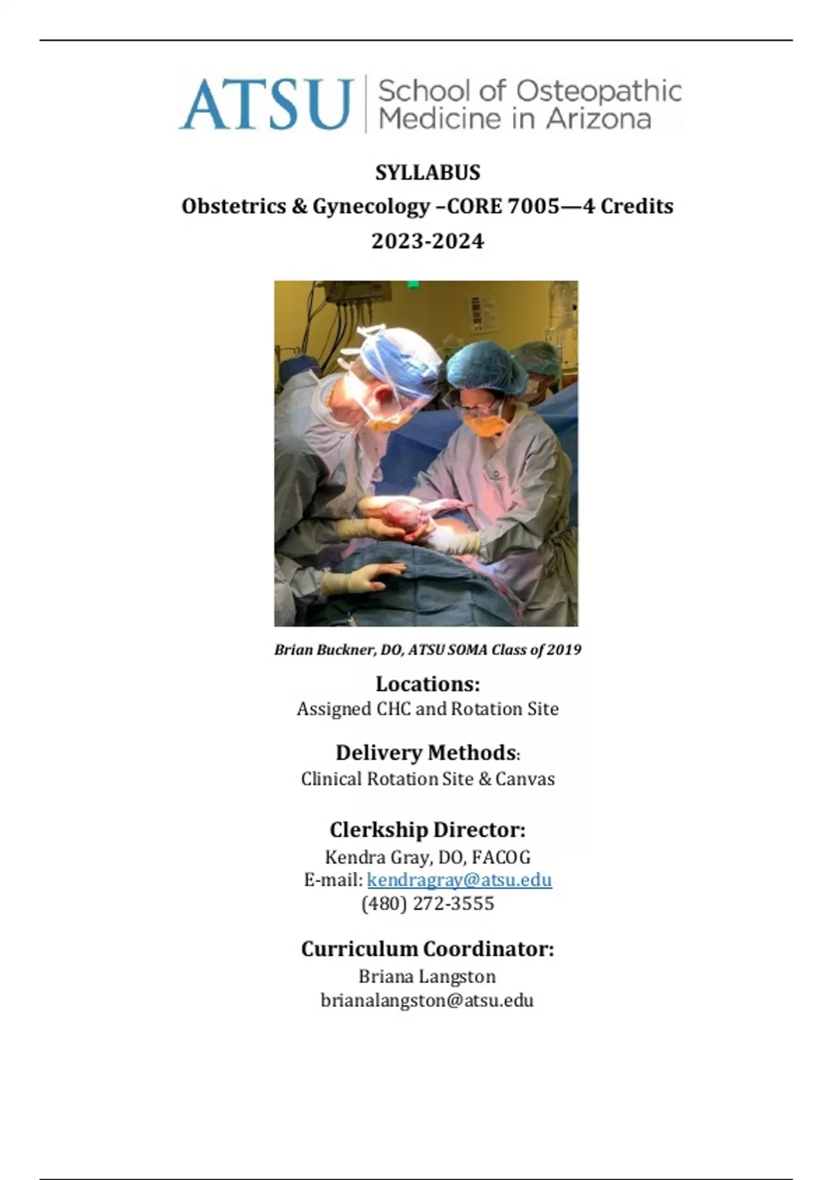 the clerkship. These assignments reflect the unique practice of an osteopathic obstetrician/gynecologist