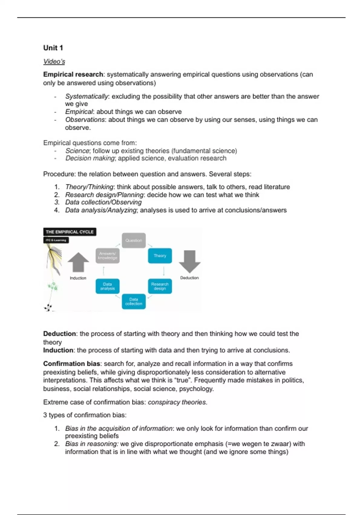 Deduction: the process of starting with theory and then thinking how we could test the