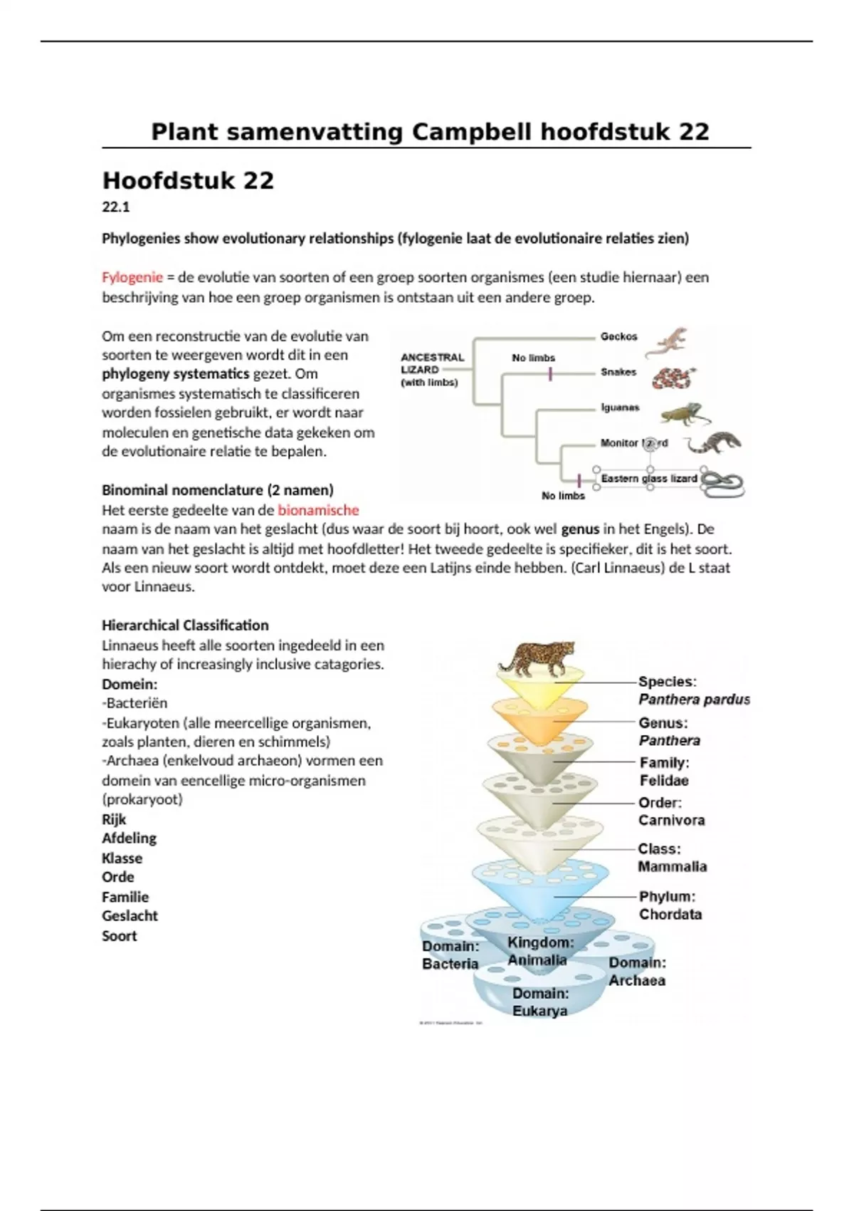 Plant samenvatting Campbell hoofdstuk 22