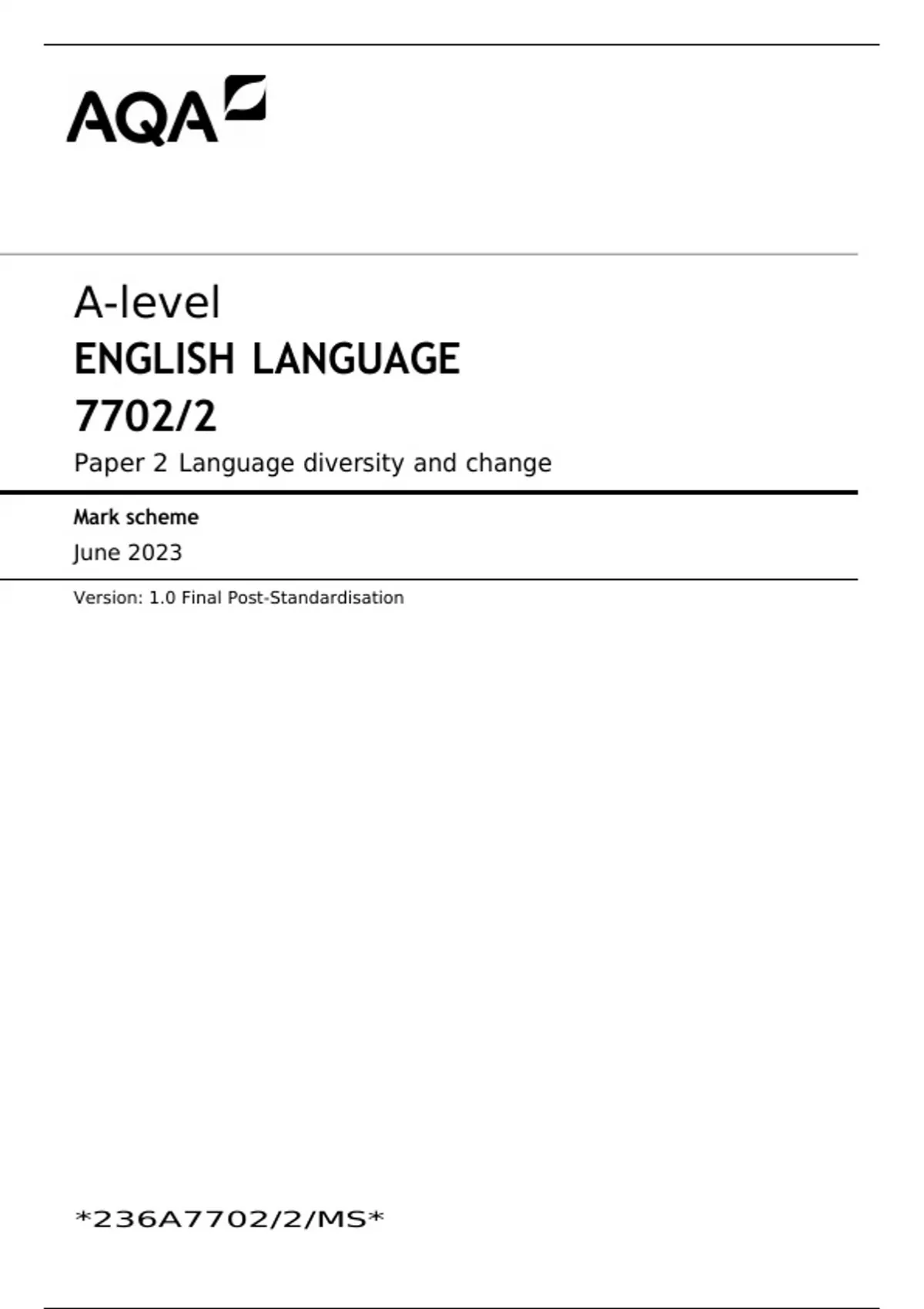 , MARK SCHEME – A-LEVEL ENGLISH LANGUAGE – 7702/2 – JUNE