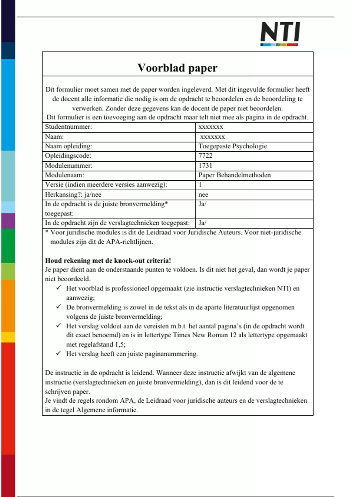 Dit formulier moet samen met de paper worden ingeleverd. Met dit ingevulde formulier heeft