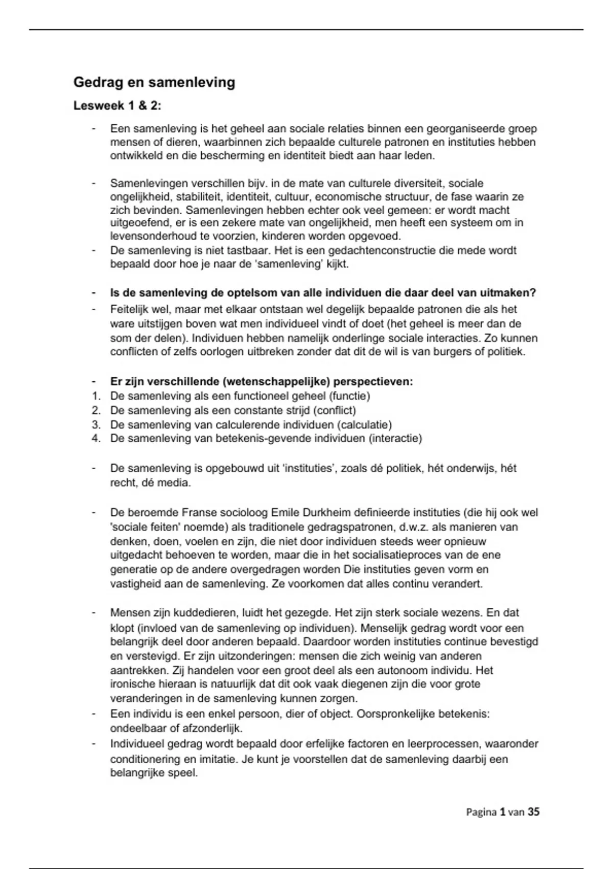 klopt (invloed van de samenleving op individuen). Menselijk gedrag wordt voor een