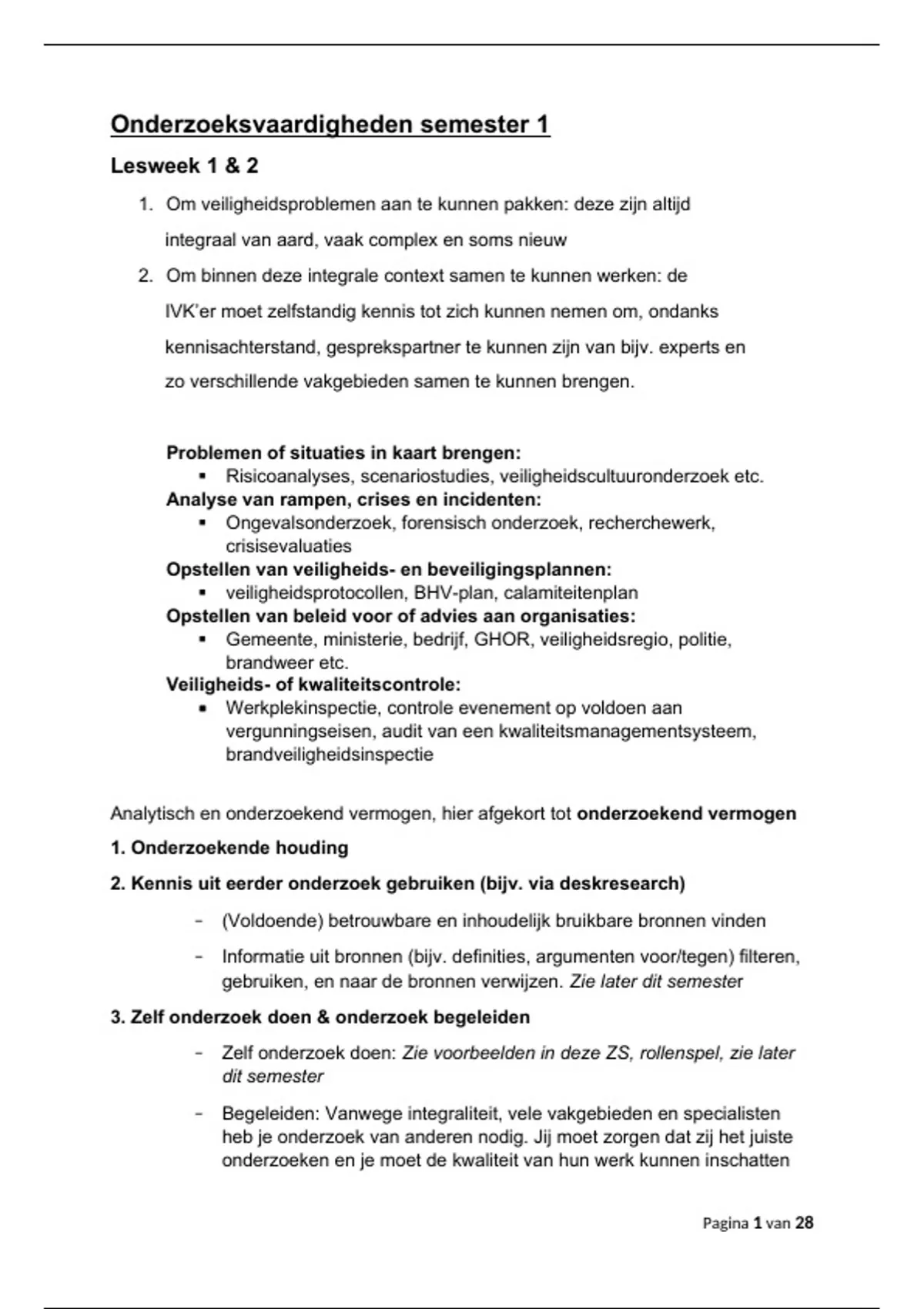 Aantekeningen colleges Onderzoeksvaardigheden semester 1, Integrale Veiligheidskunde studiejaar