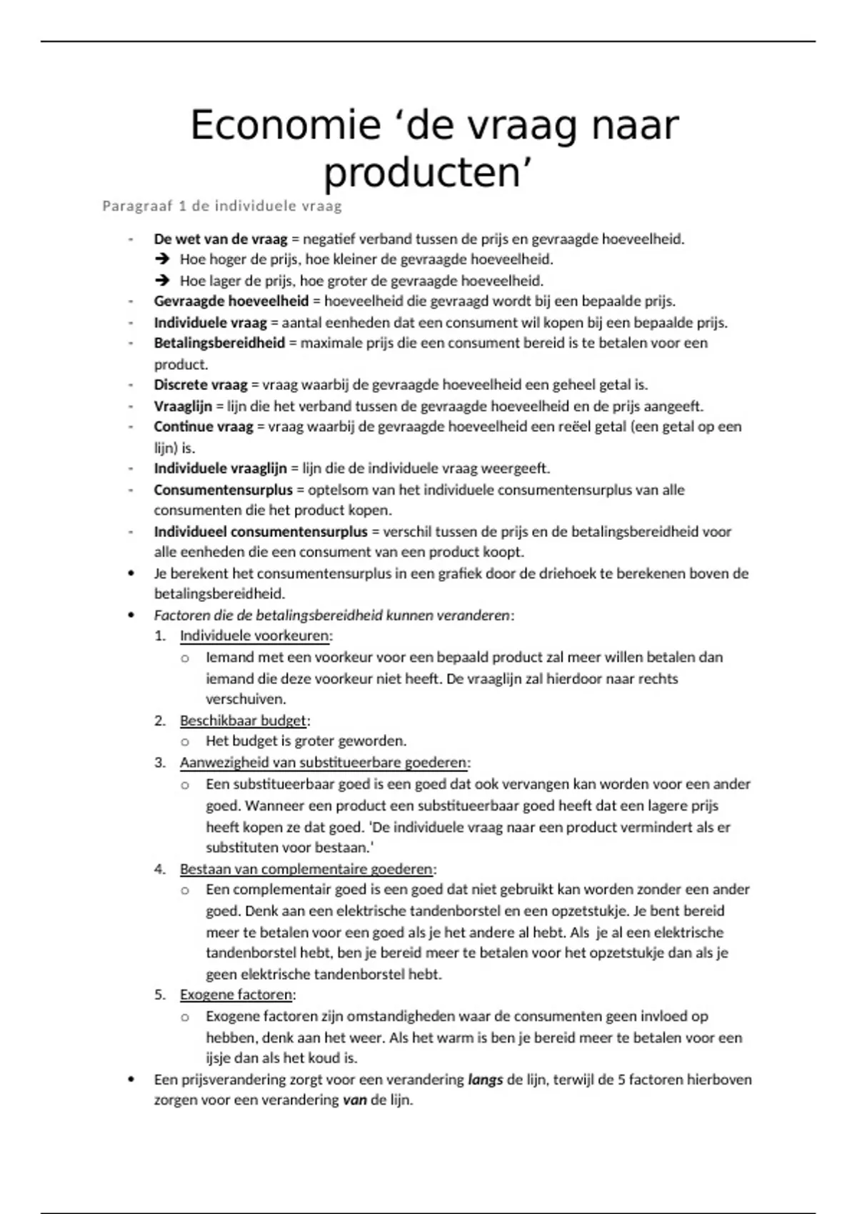 - Individuele vraaglijn = lijn die de individuele vraag weergeeft.