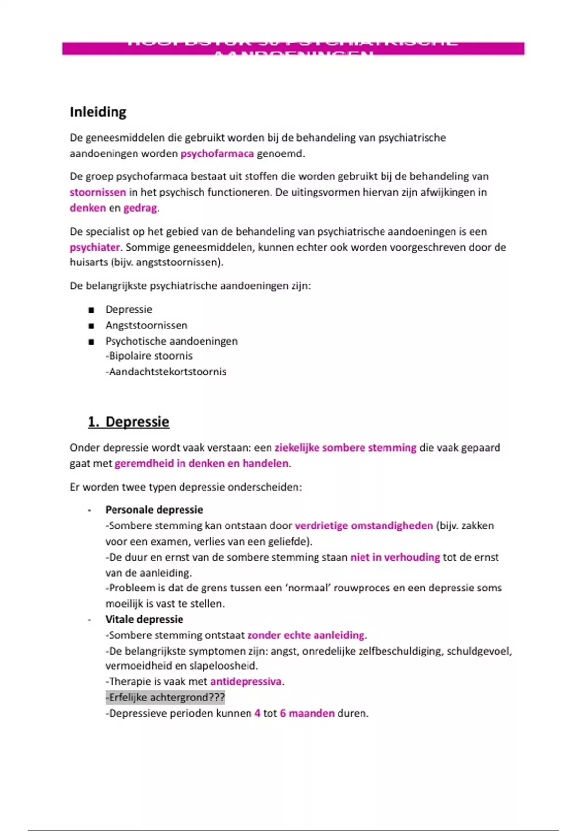 De belangrijkste psychiatrische aandoeningen zijn: