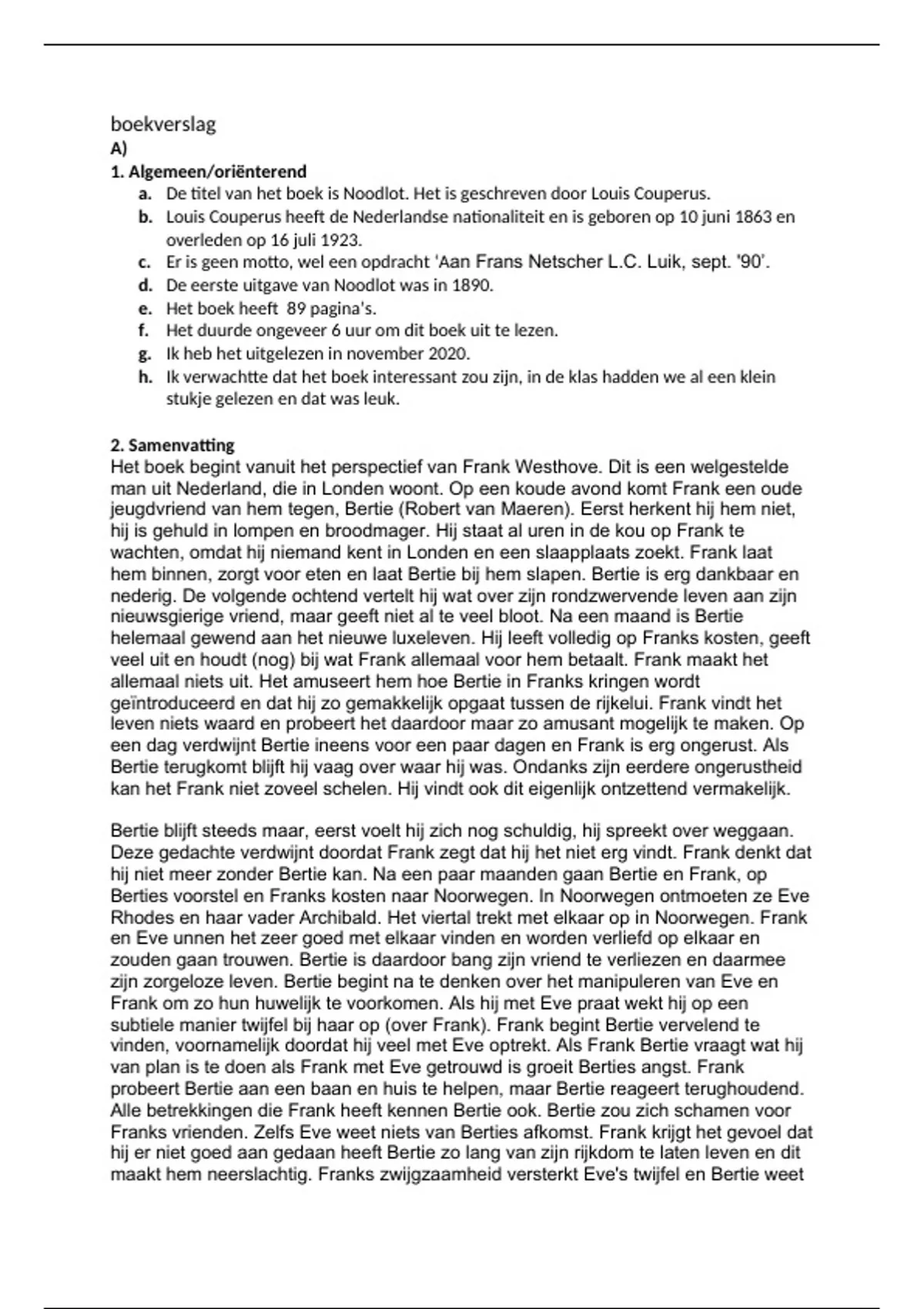 Samenvatting studieboek Noodlot van Louis Couperus, H.T.M. van Vliet - ISBN: 9788726112764, Druk: 1, Uitgavejaar: - (boekverslag noodlot)