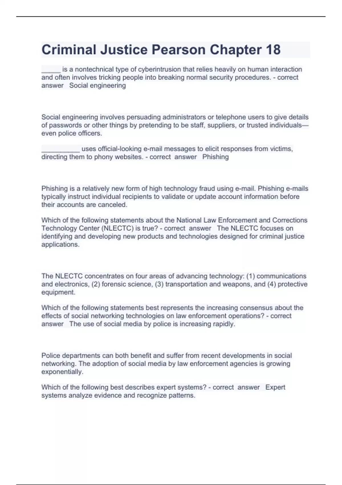 Criminal Justice Pearson Chapter 18 Question and answers rated A+ 2023