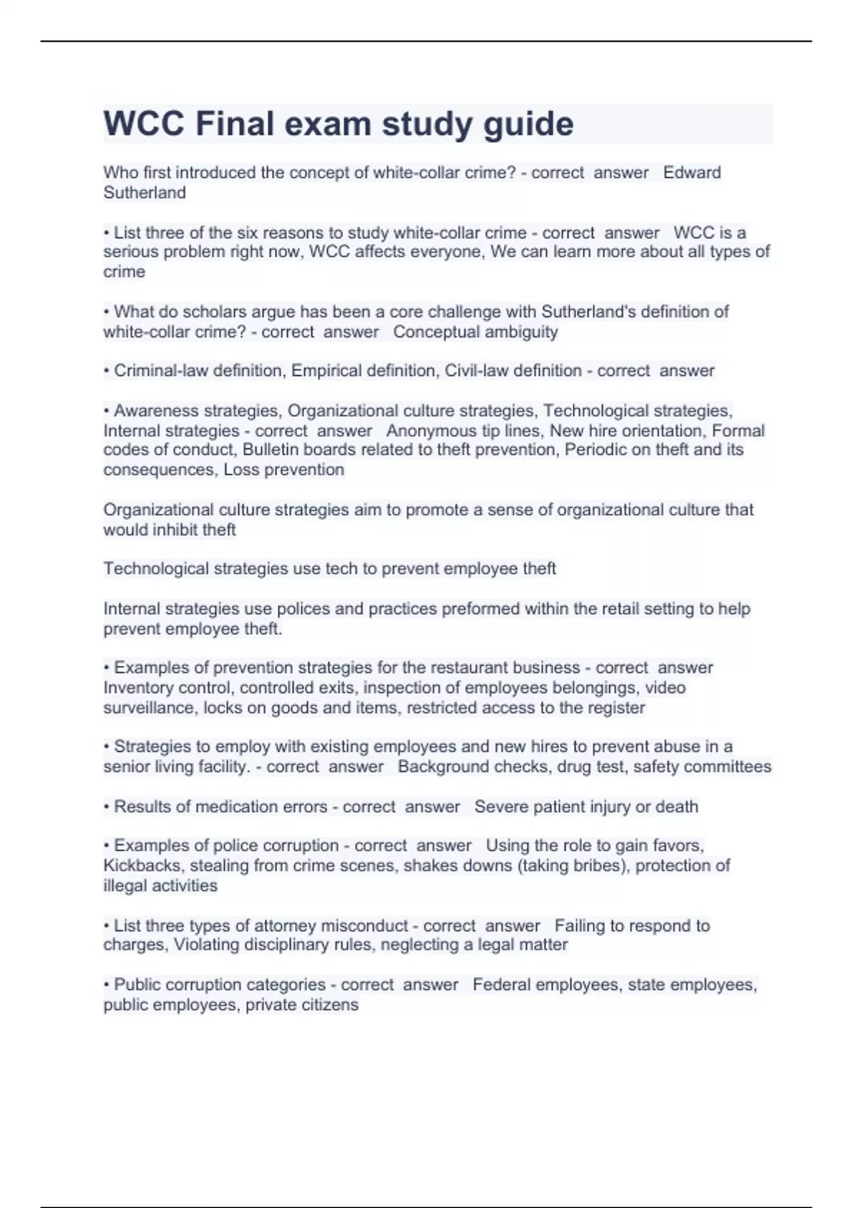 WCC Final exam study guide Question and answers rated A+ 2023