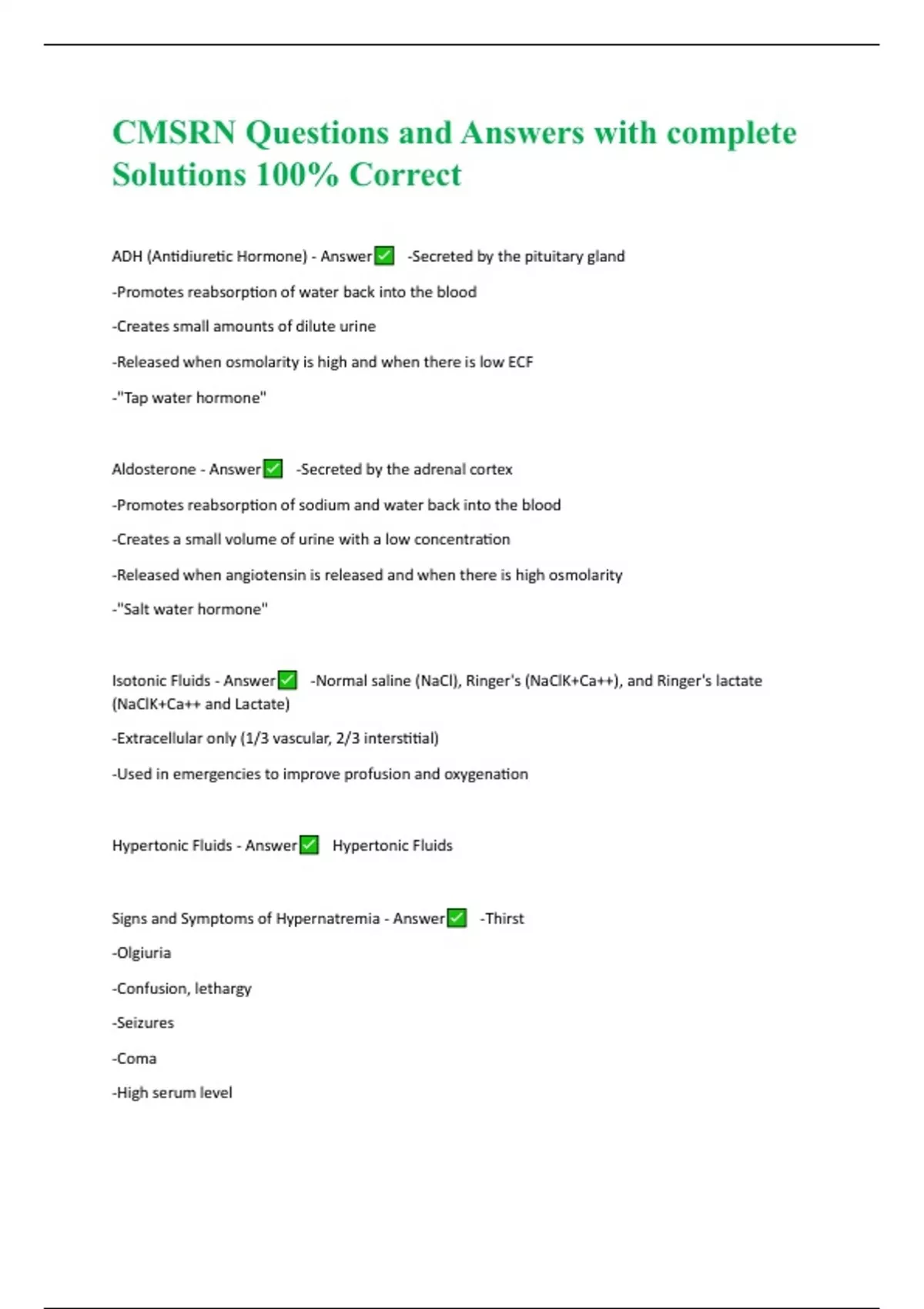 CMSRN Questions and Answers with complete Solutions 100% Correct