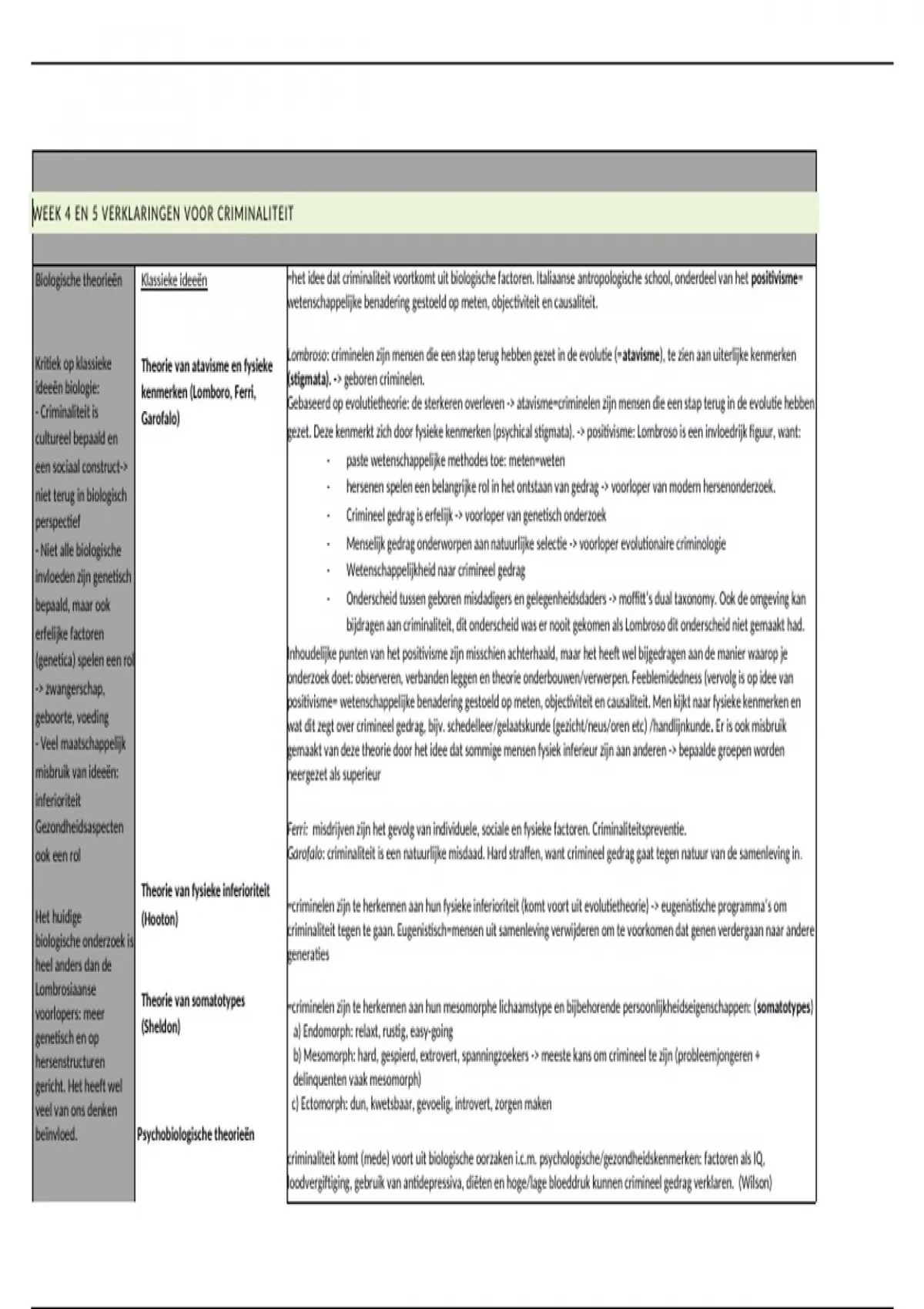 Samenvatting Schema Criminologische theorieën week 4 en 5